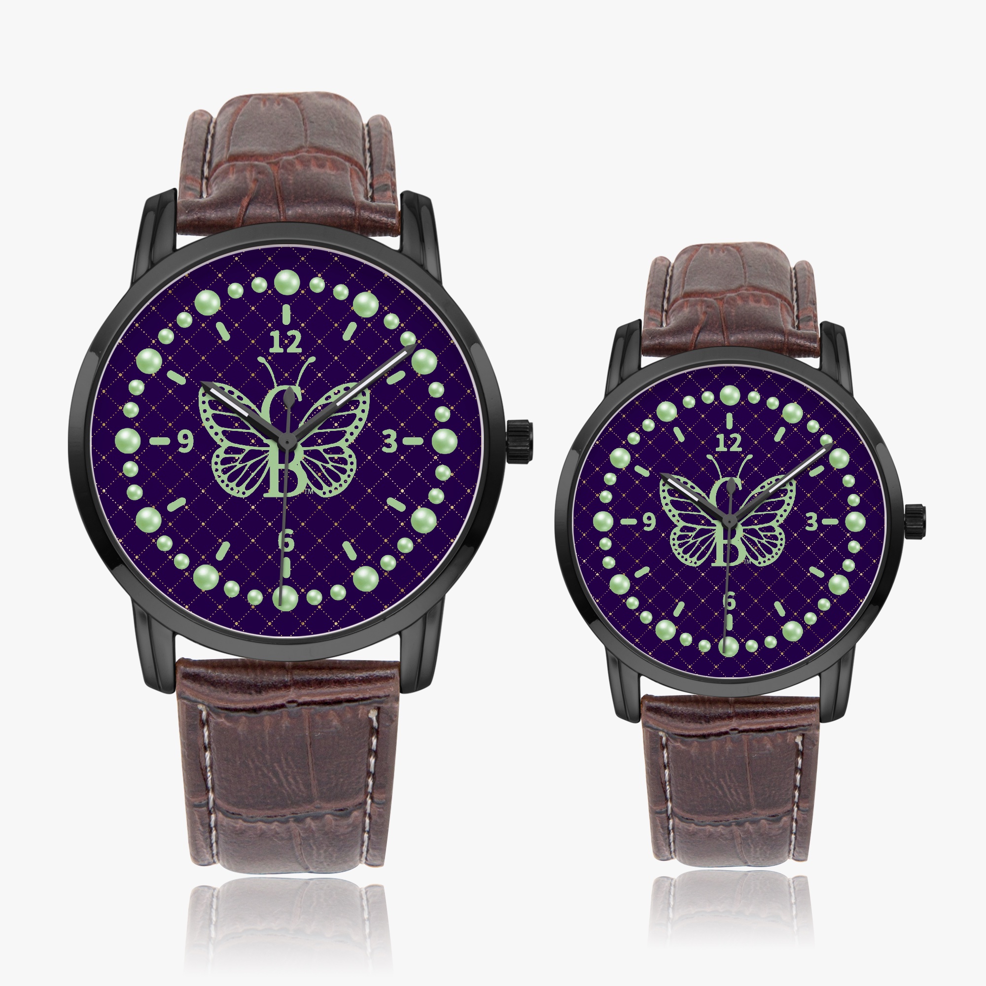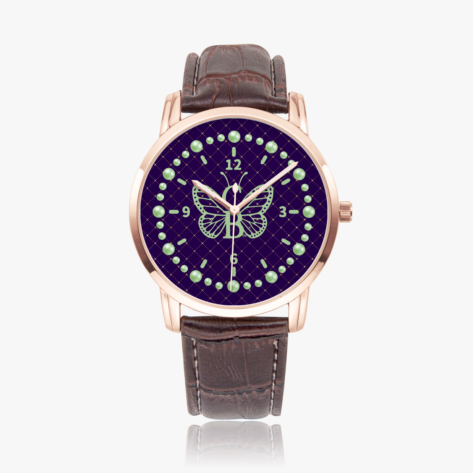 High density 304 stainless steel case and leather bands, electroplated process to get great glossiness and various colors. No allergy.