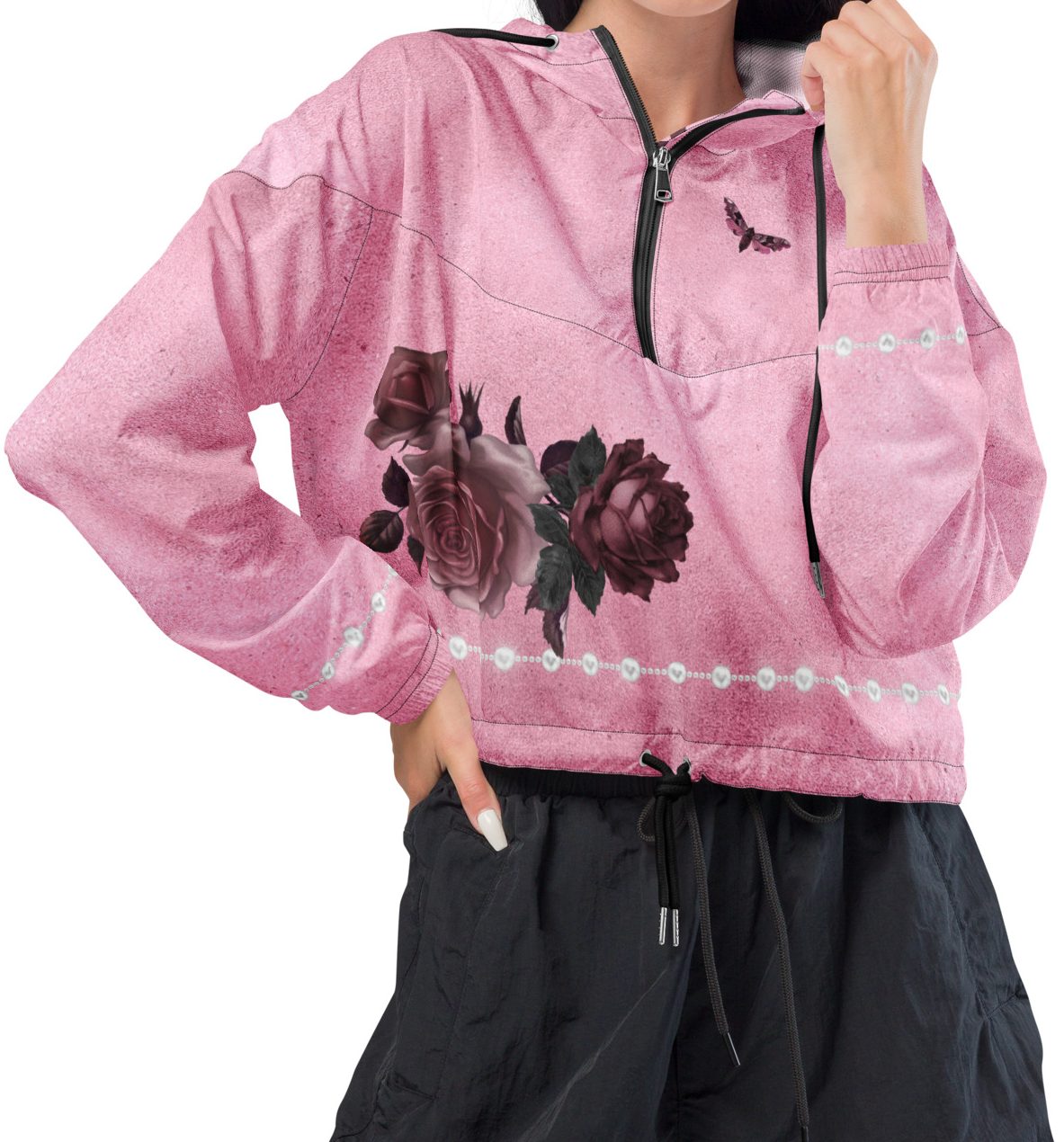 Pink Bordeaux Collection – Cropped Windbreaker Pink with White Pearl