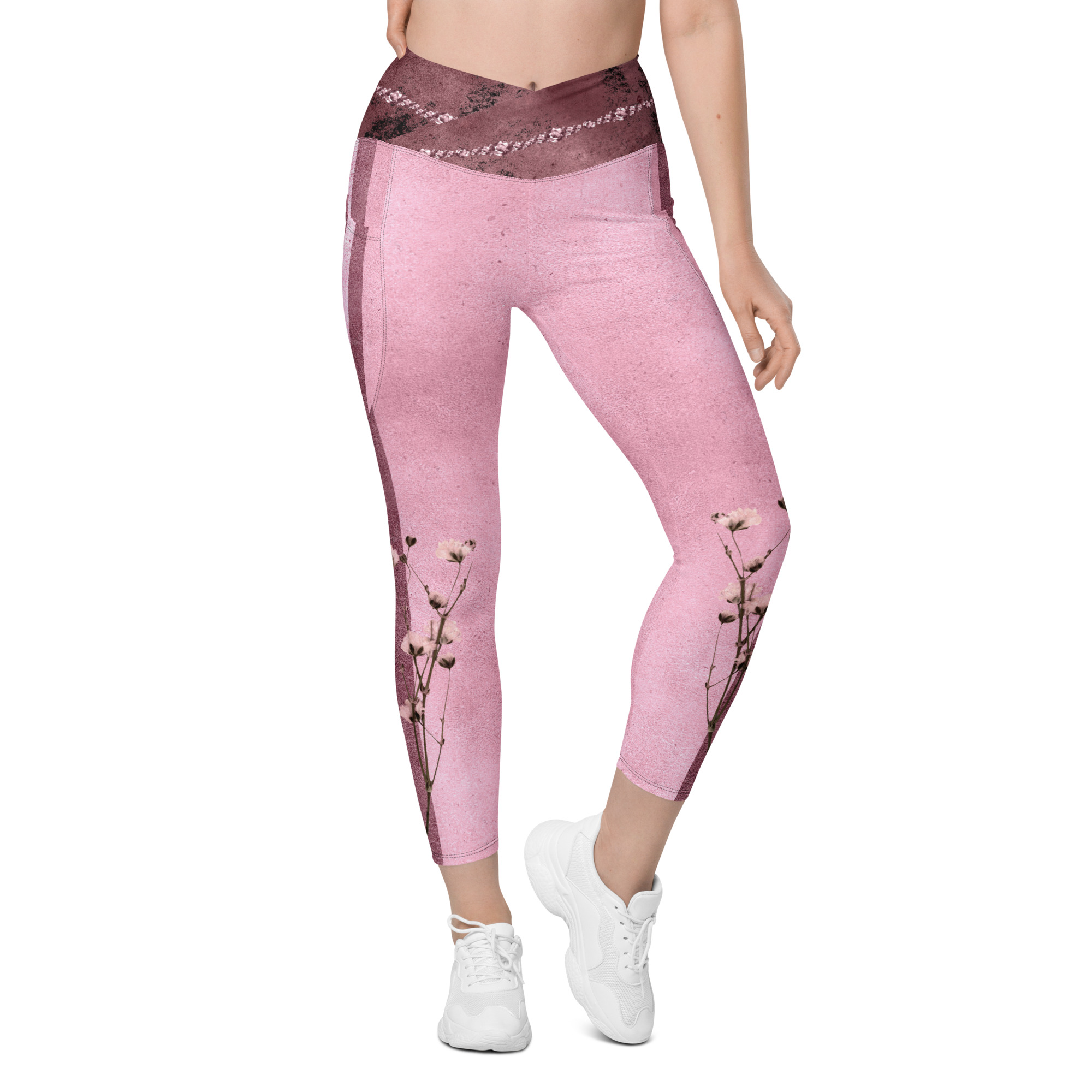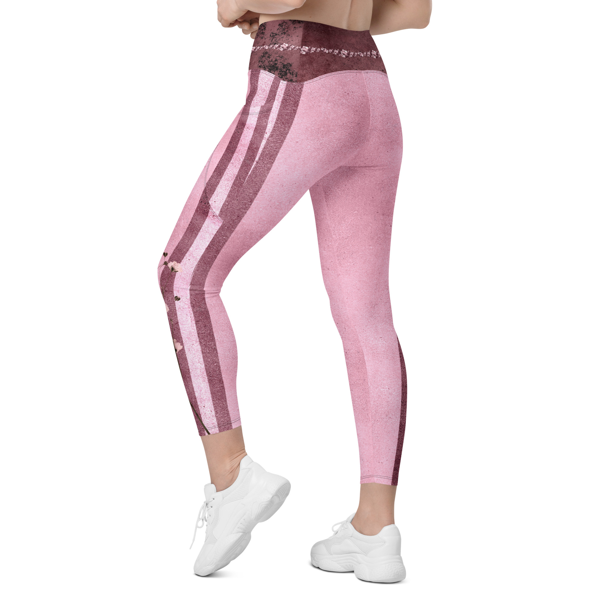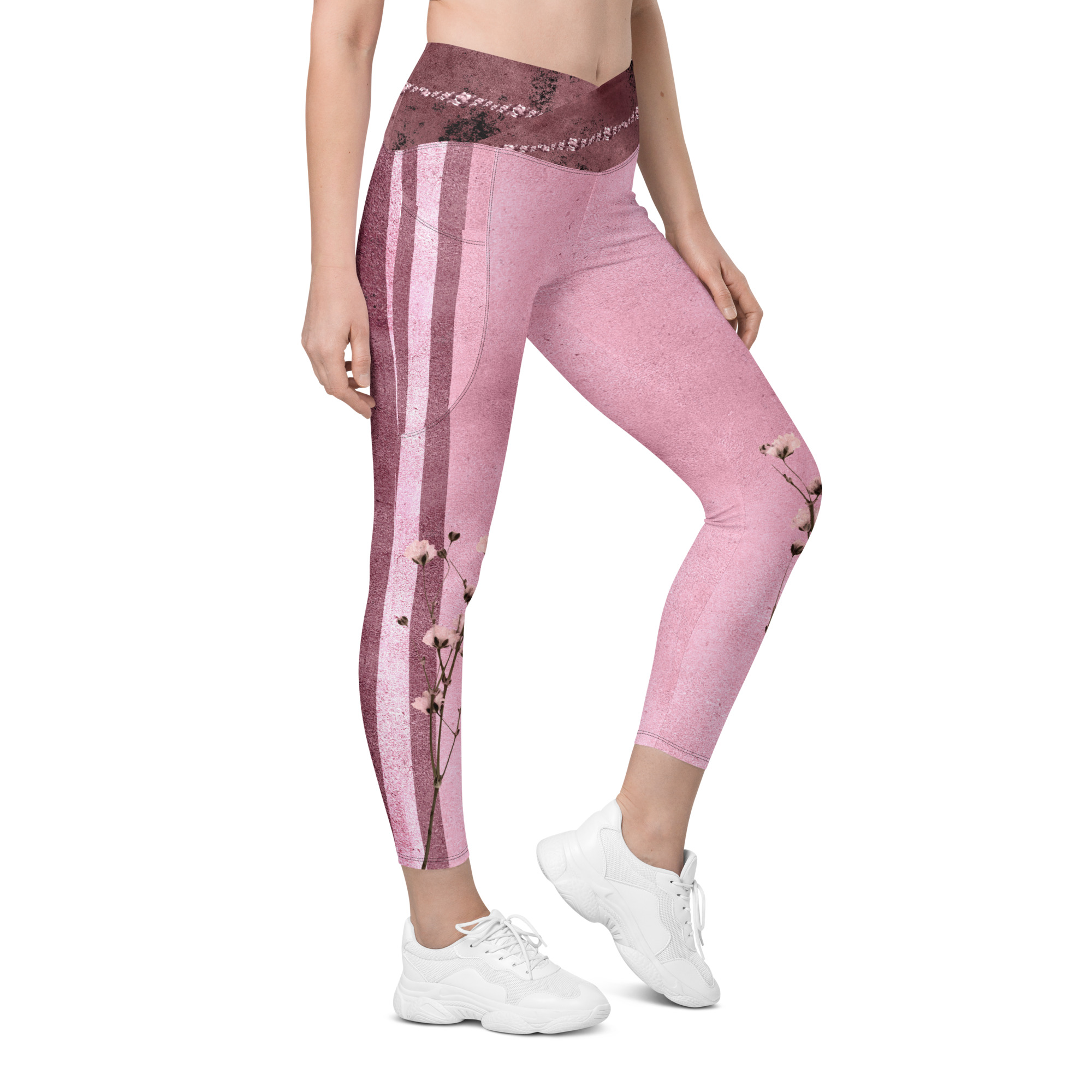 Pink Bordeaux Collection – Crossover Leggings with Rose Stripes