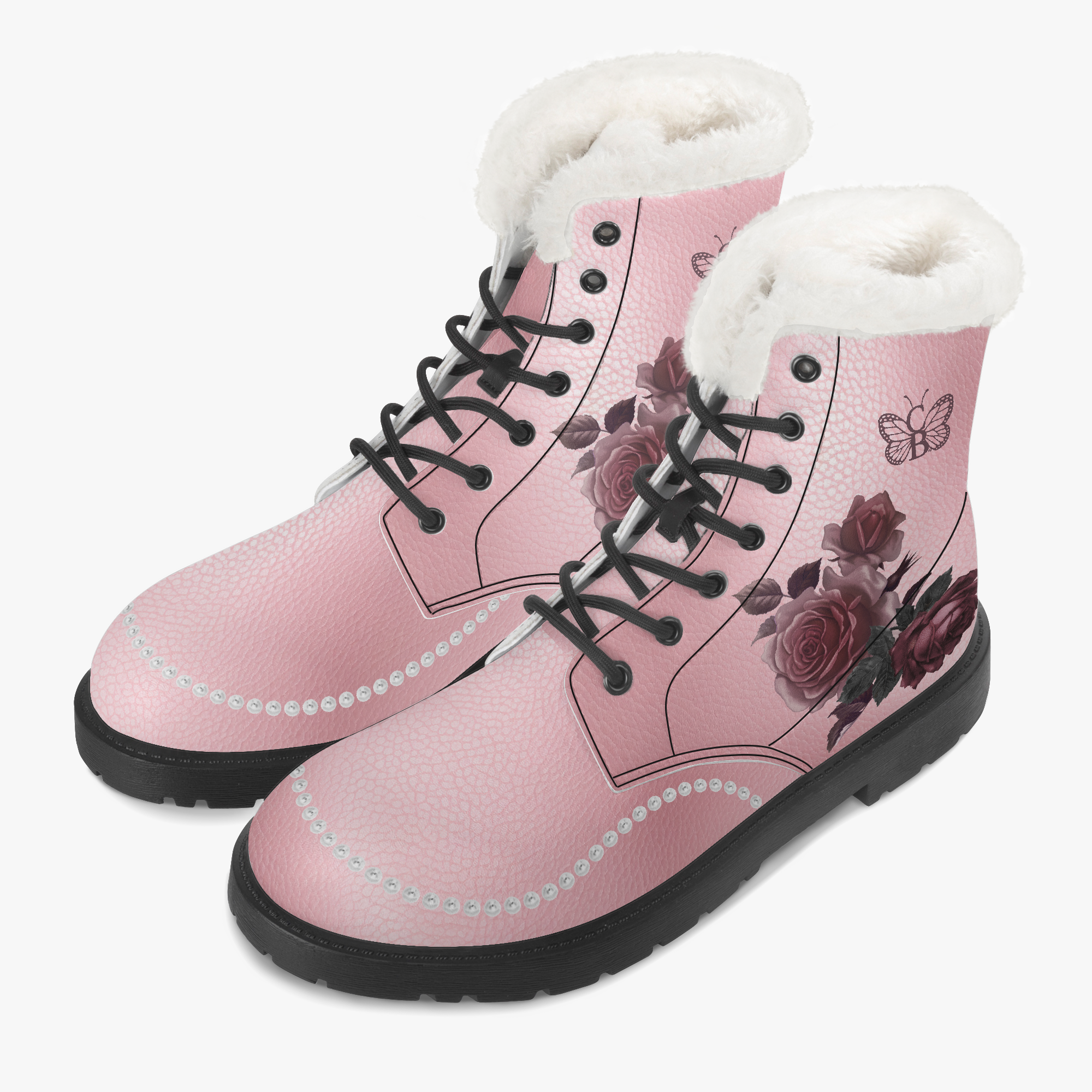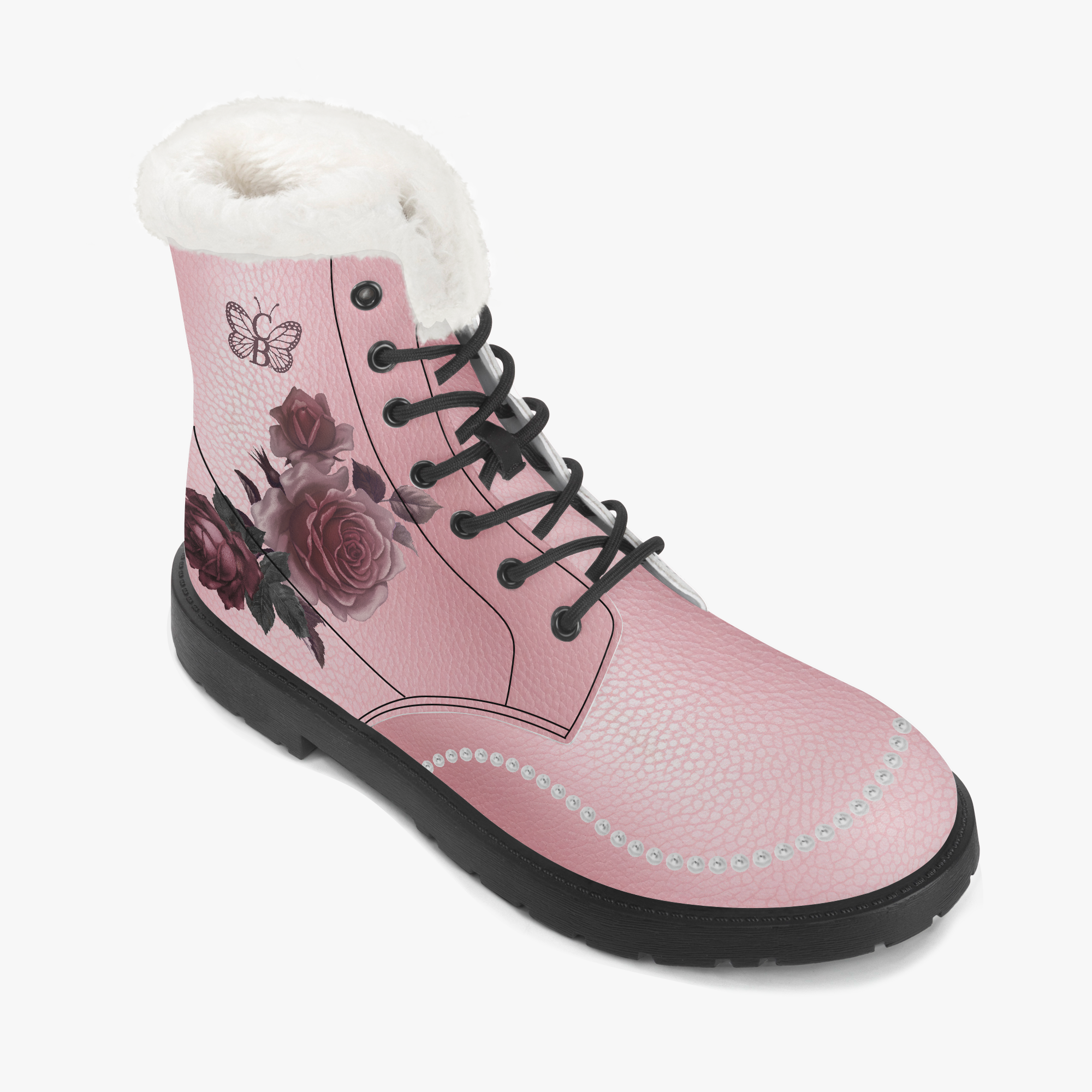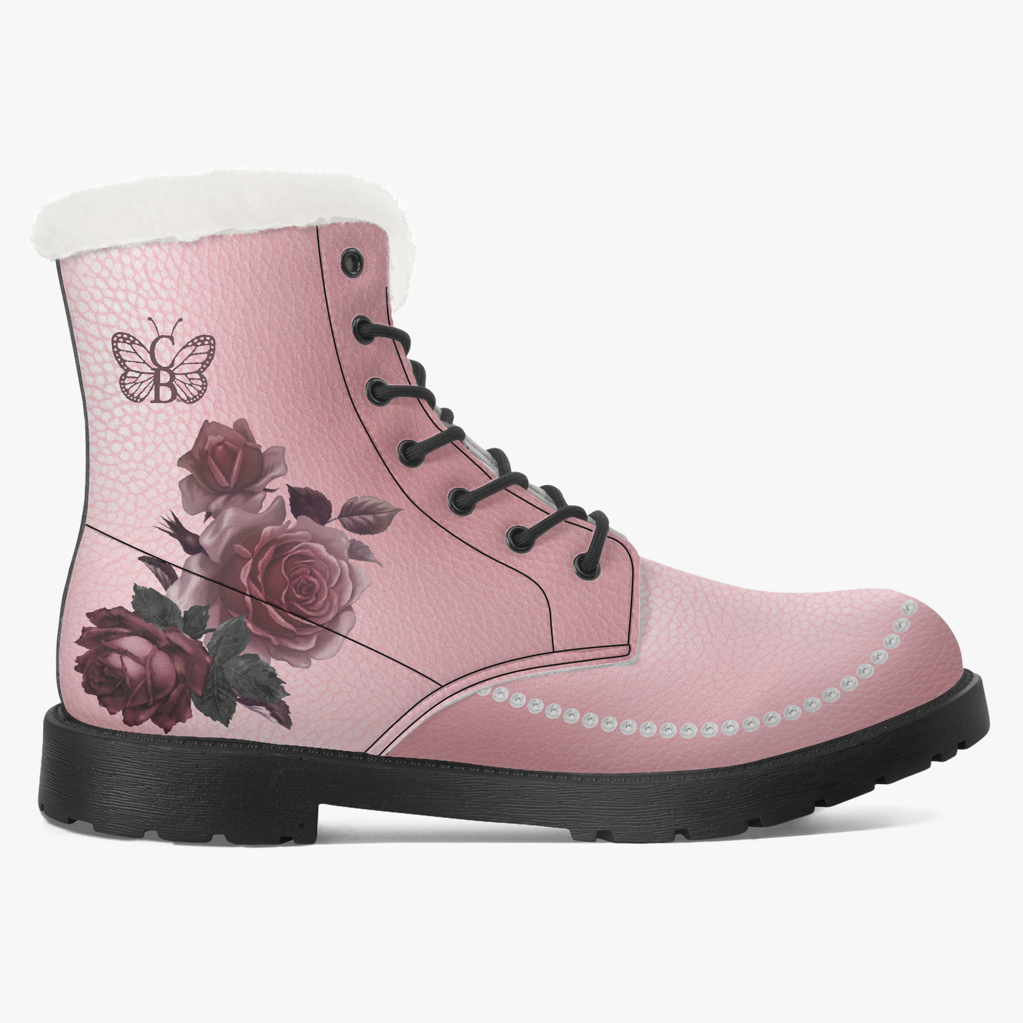 Pink Bordeaux Collection – Faux Fur Leather Boots Pink with White Pearl