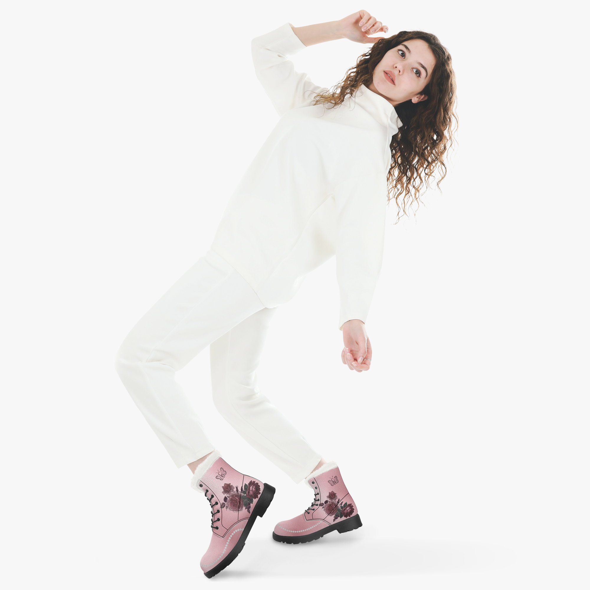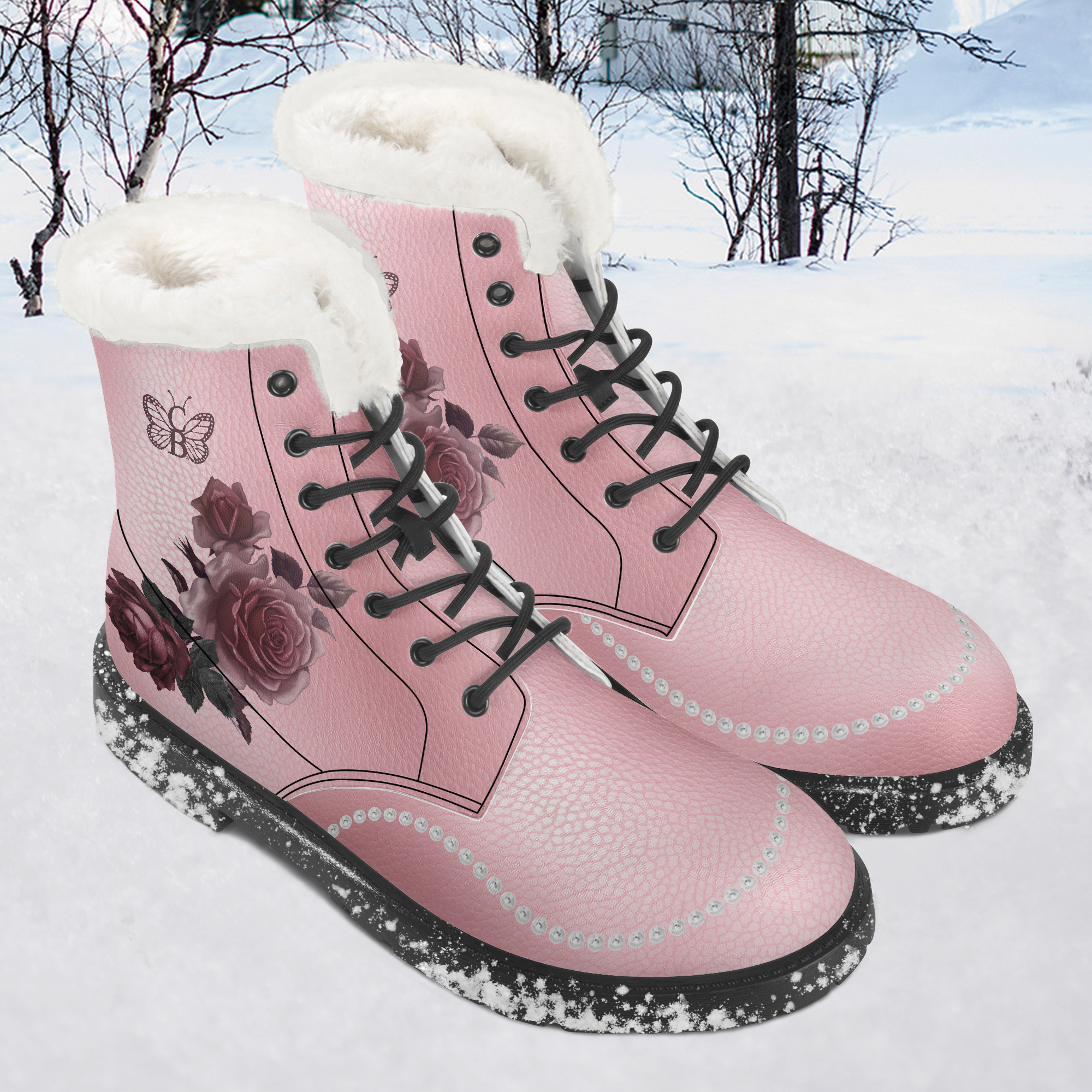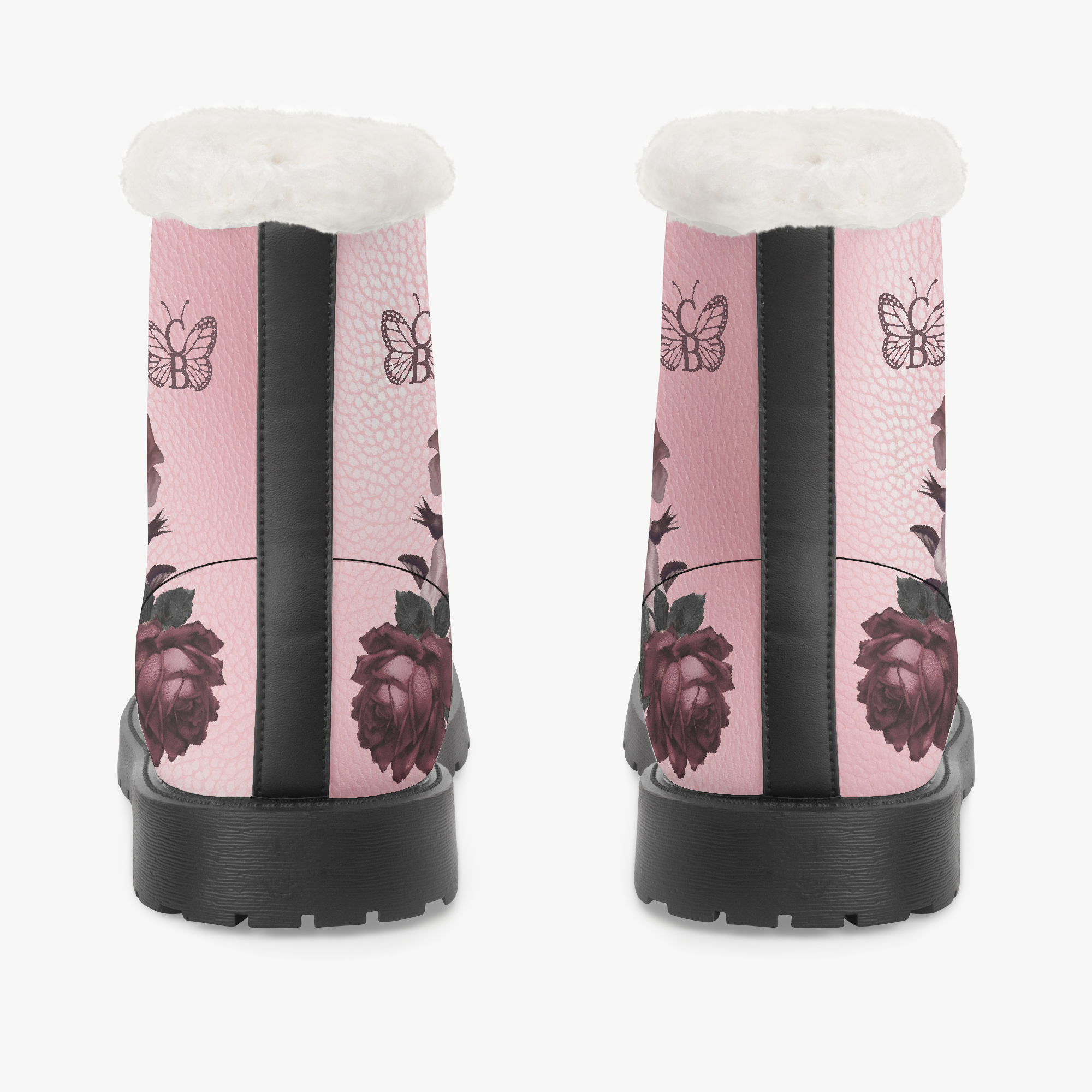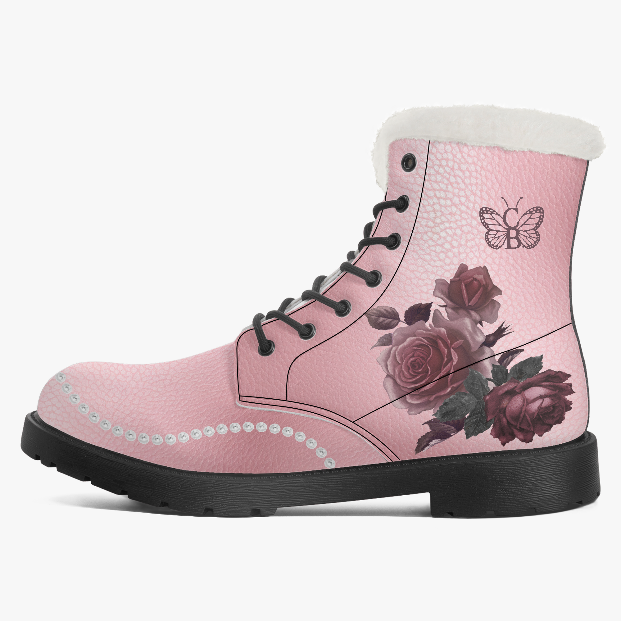 Pink Bordeaux Collection – Faux Fur Leather Boots Pink with White Pearl