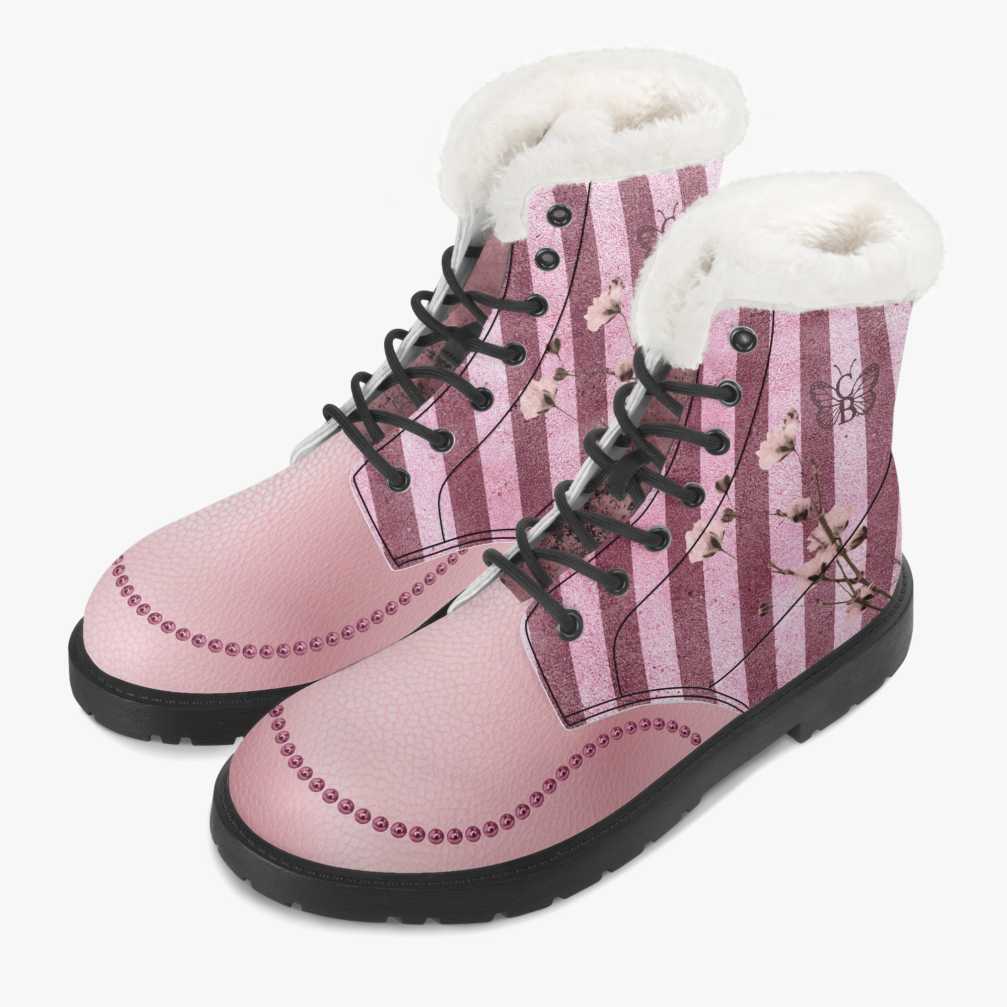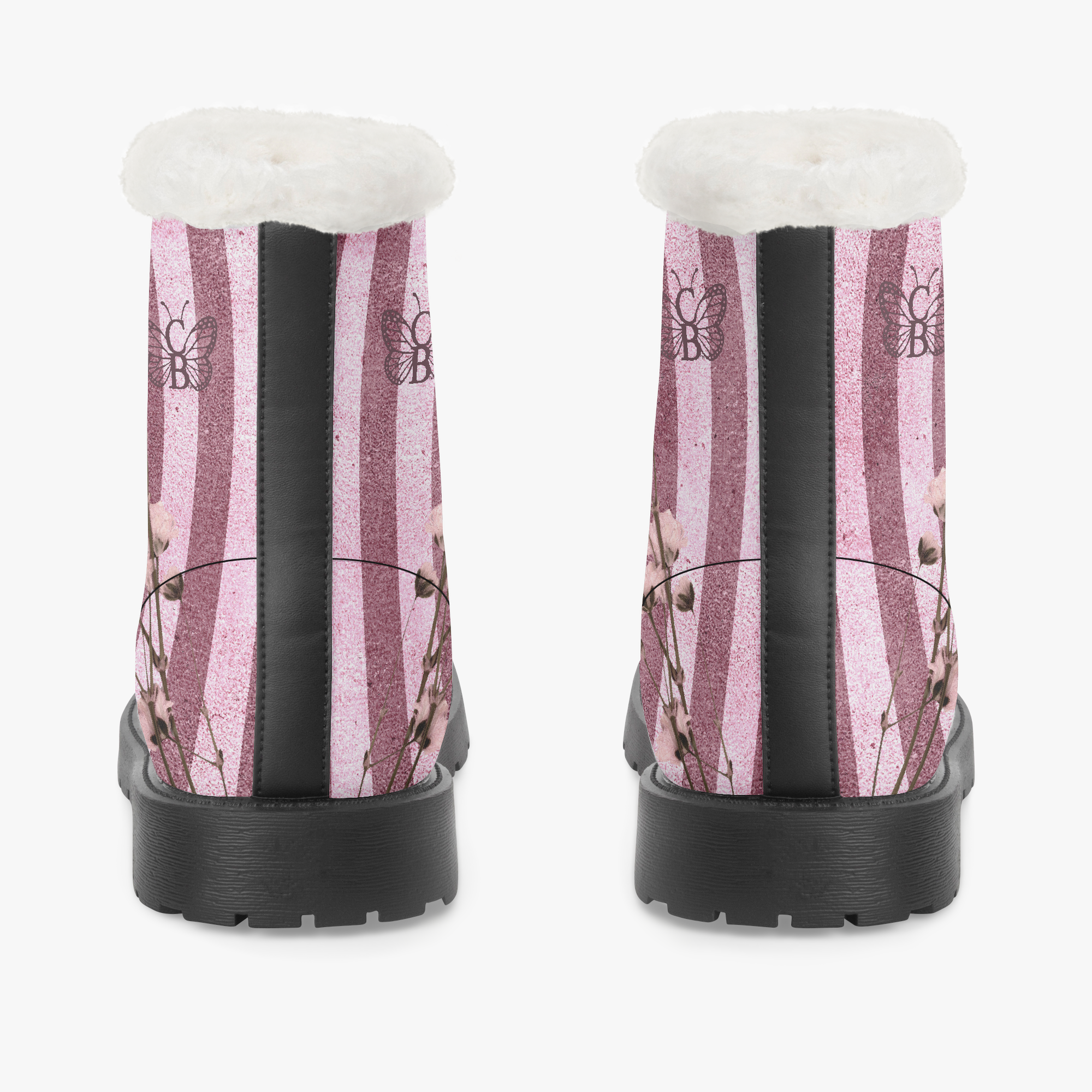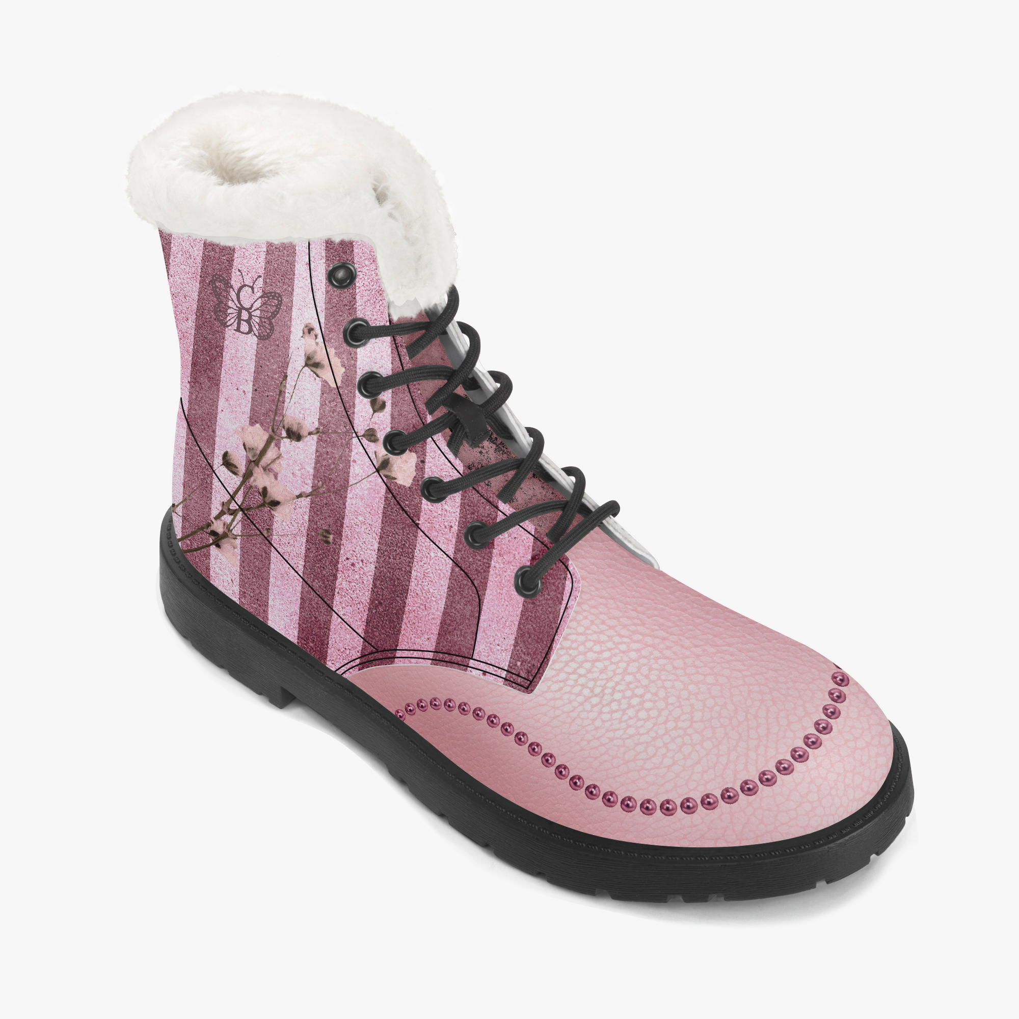 Pink Bordeaux Collection – Faux Fur Leather Boots with Rose Stripes