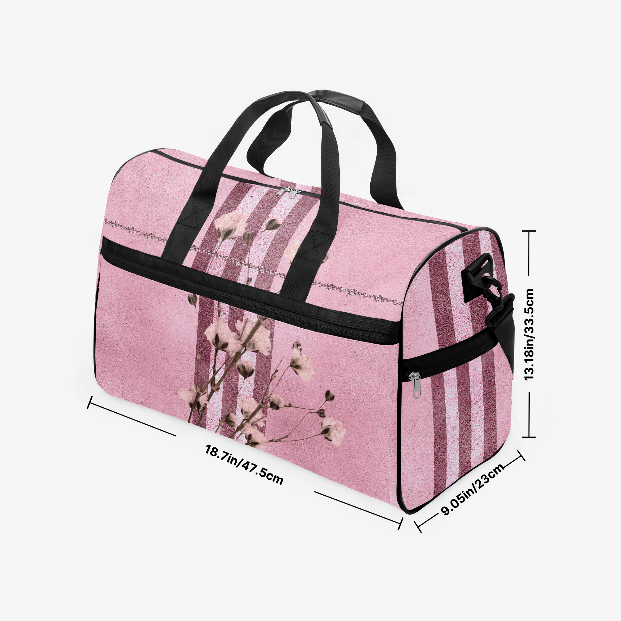Pink Bordeaux Collection – Gym Duffel Bag with Rose Stripes