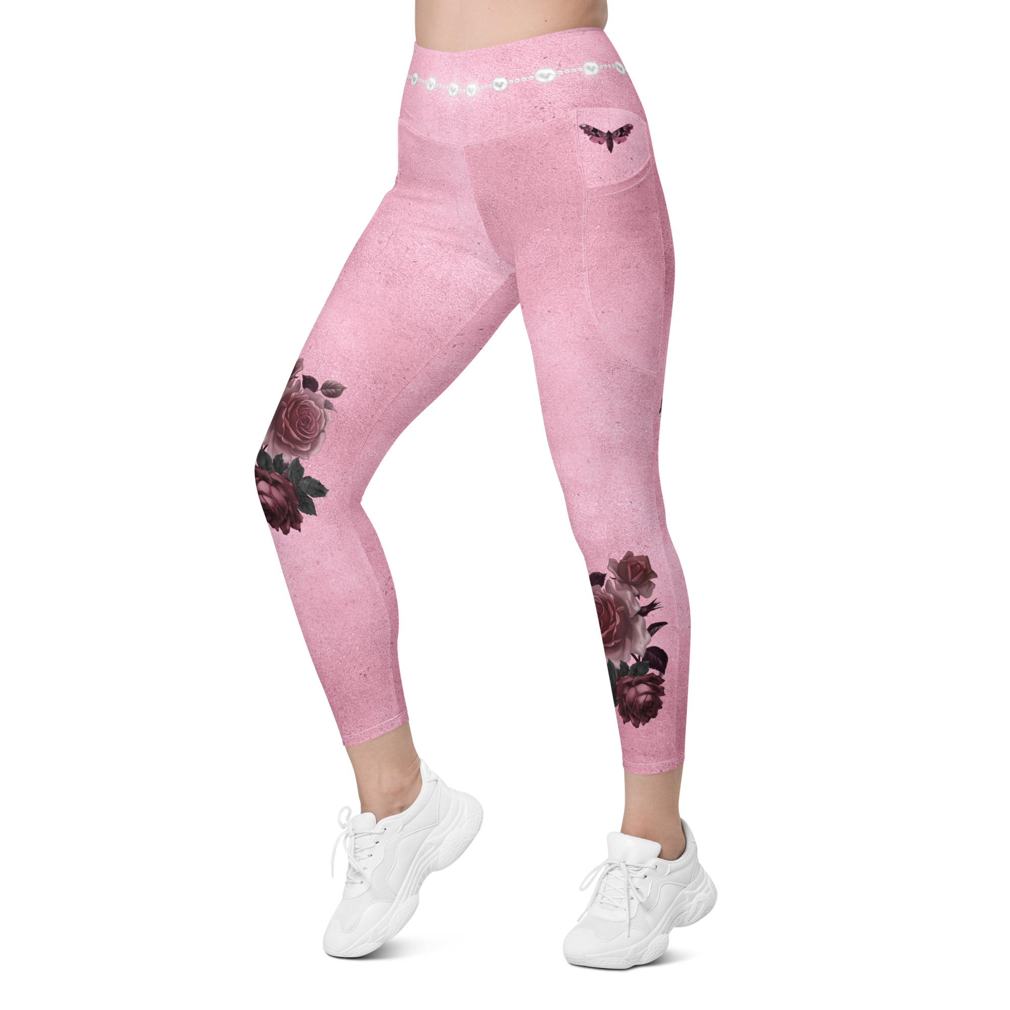 Pink Bordeaux Collection – Cut & Sew Casual Leggings Pink with White Pearl