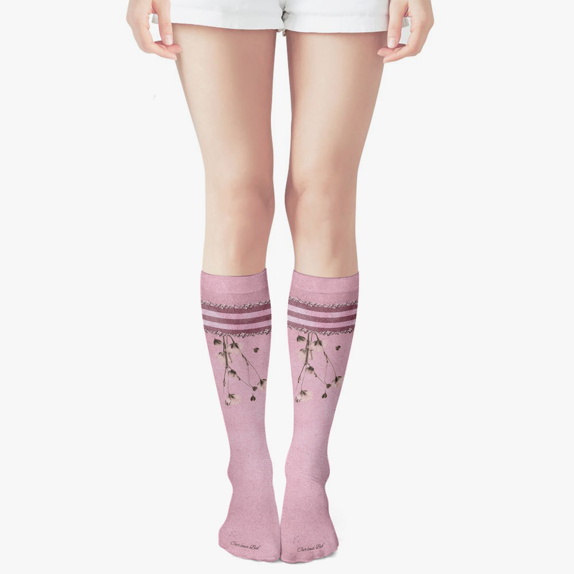 Pink Bordeaux Collection – Knee High Socks with Rose Stripes