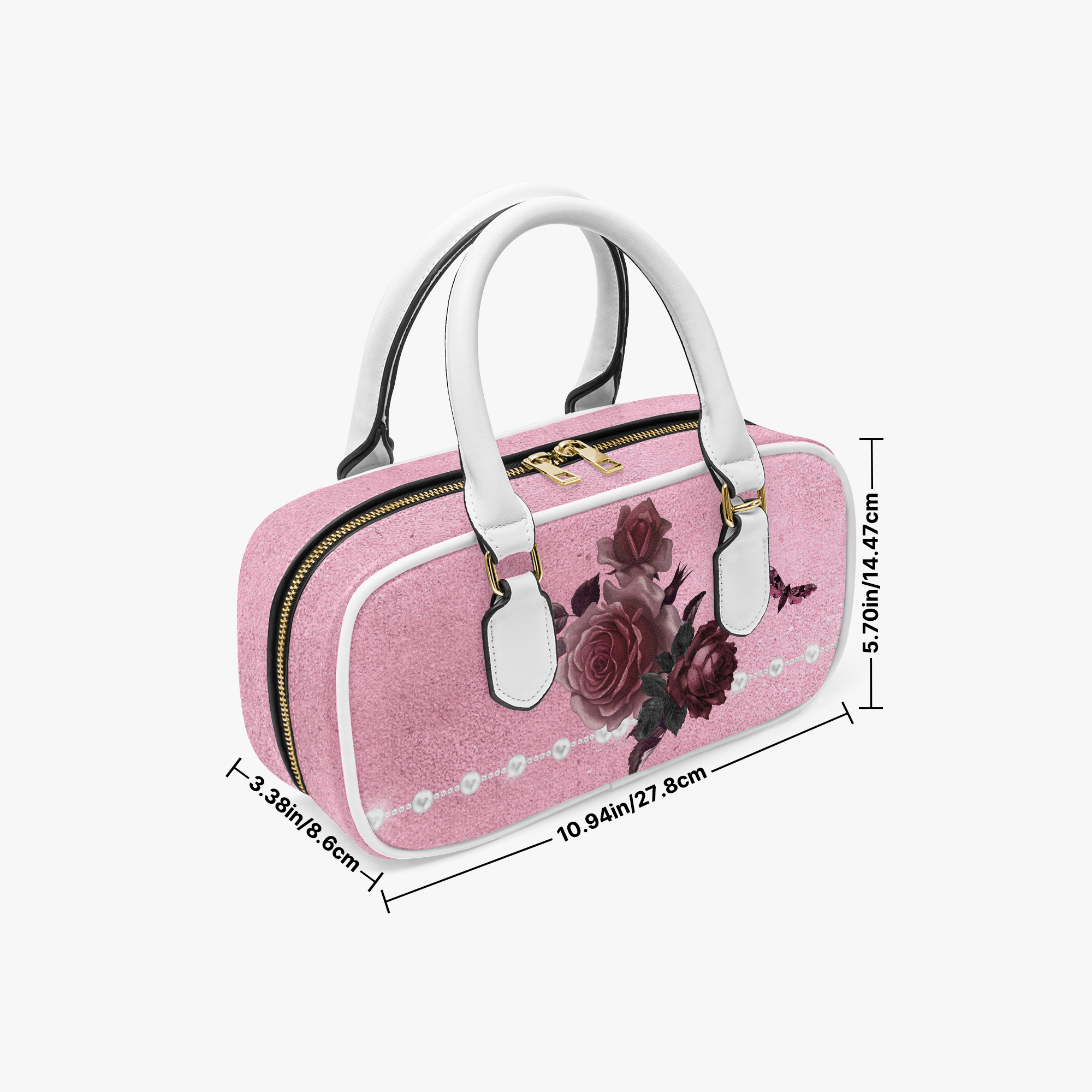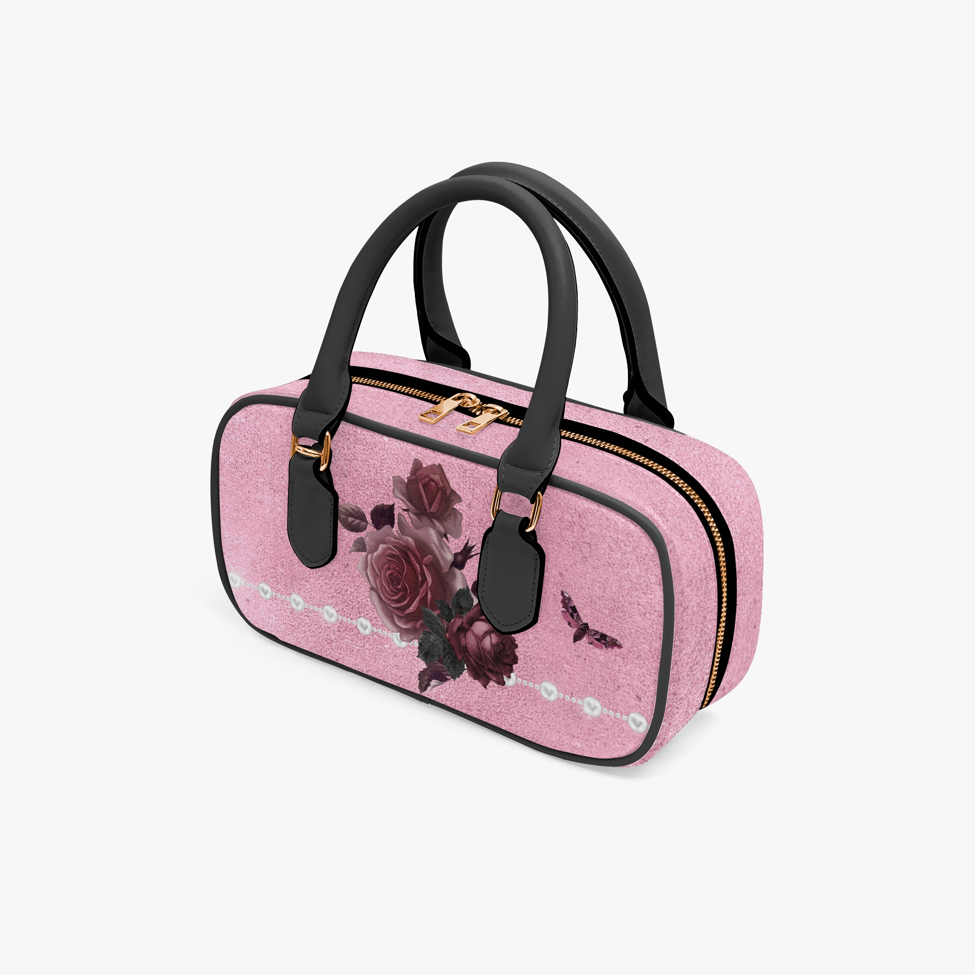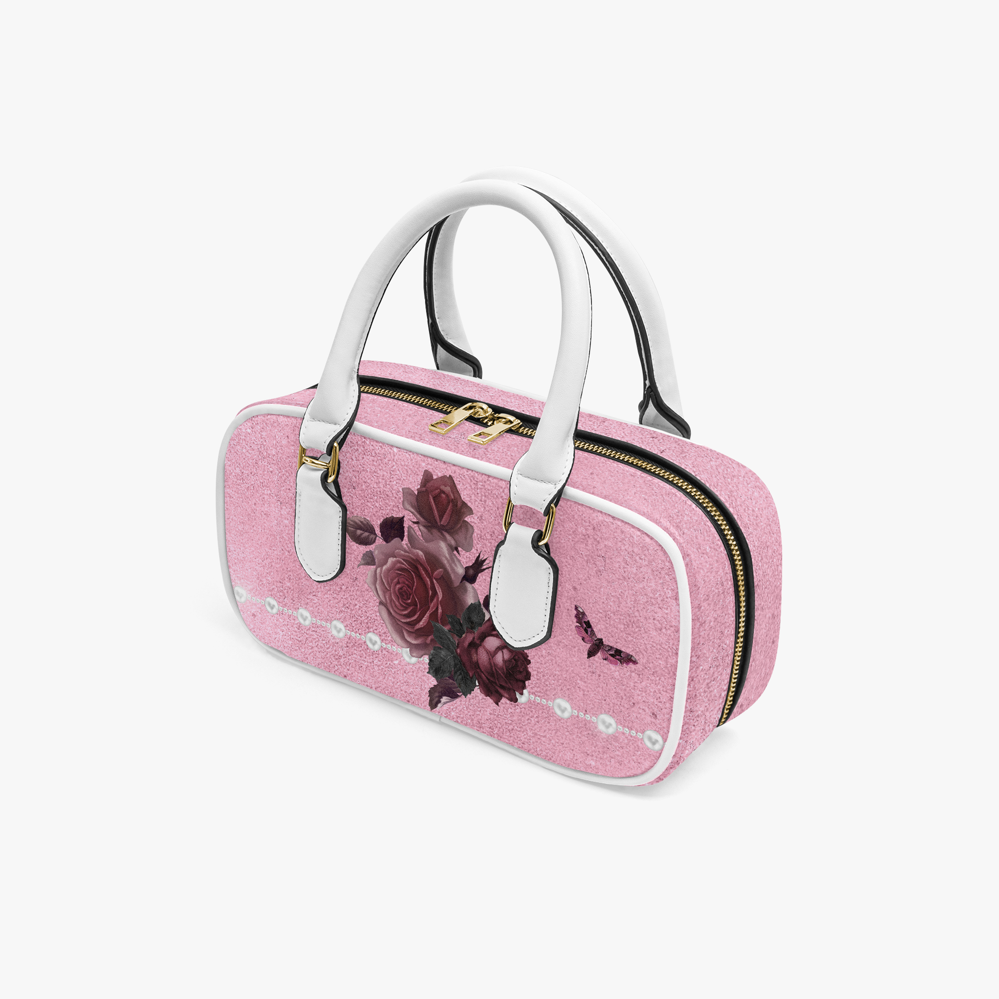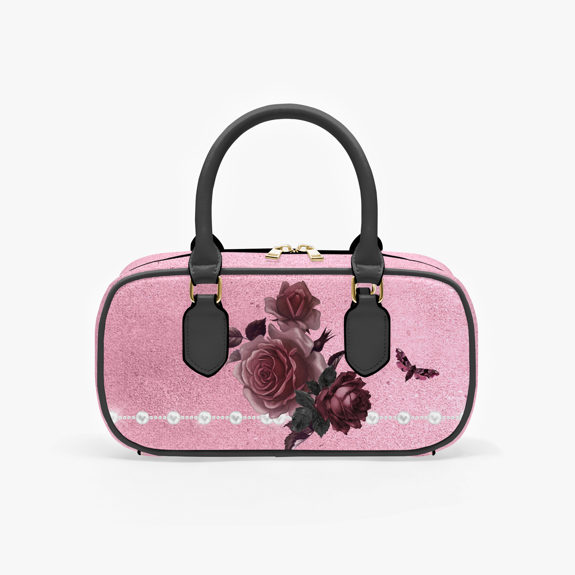 Pink Bordeaux Collection – Top Handle Wide Bag Pink with White Pearl
