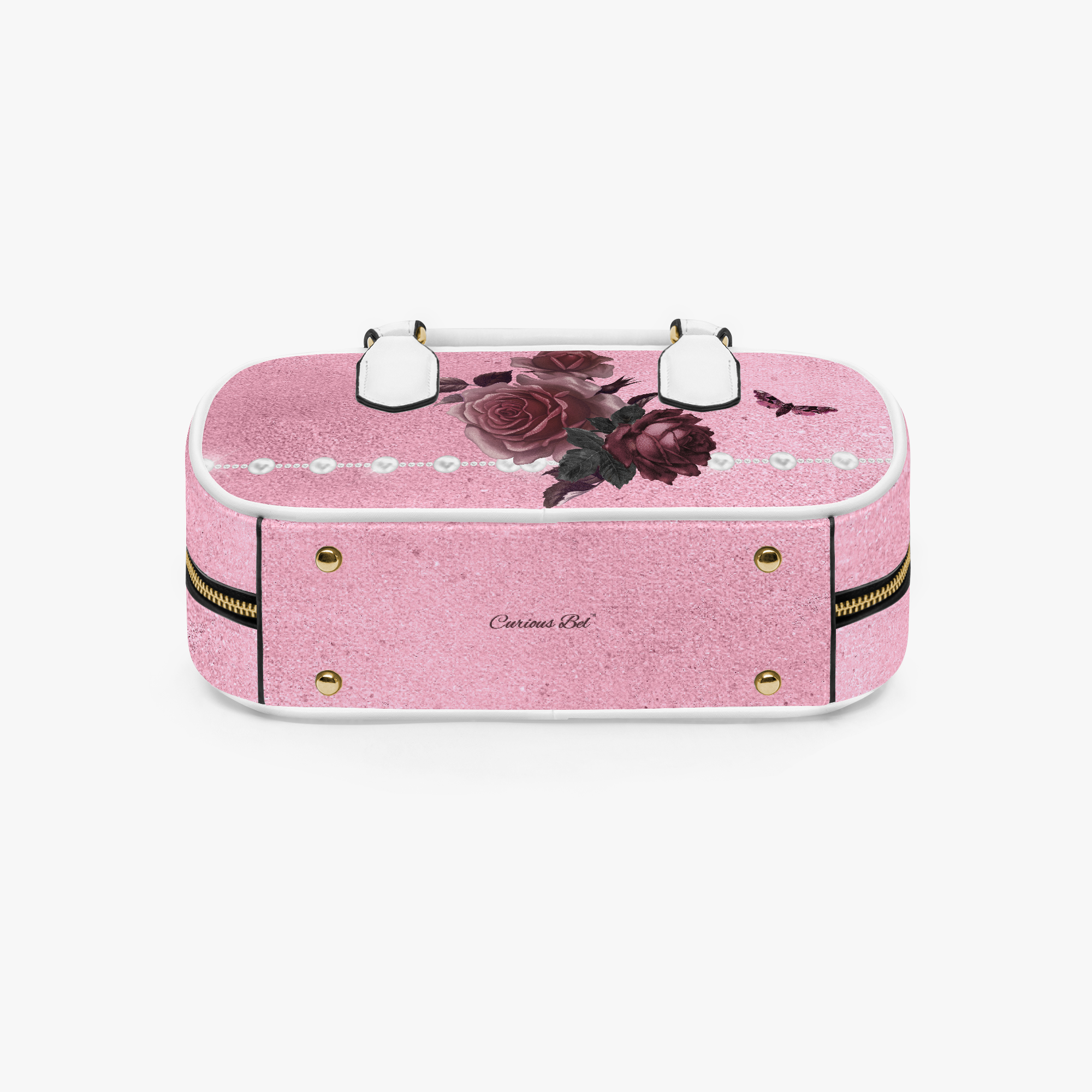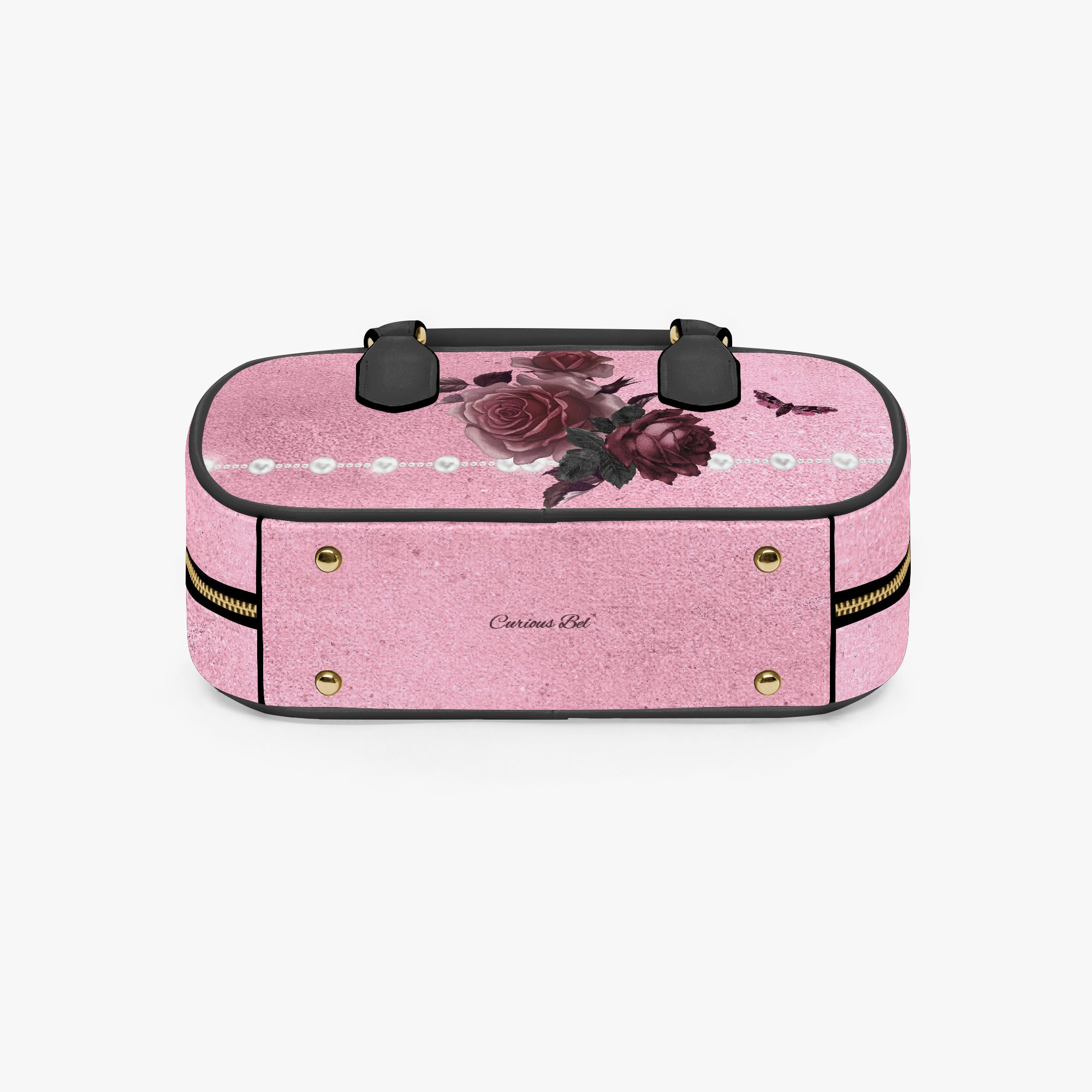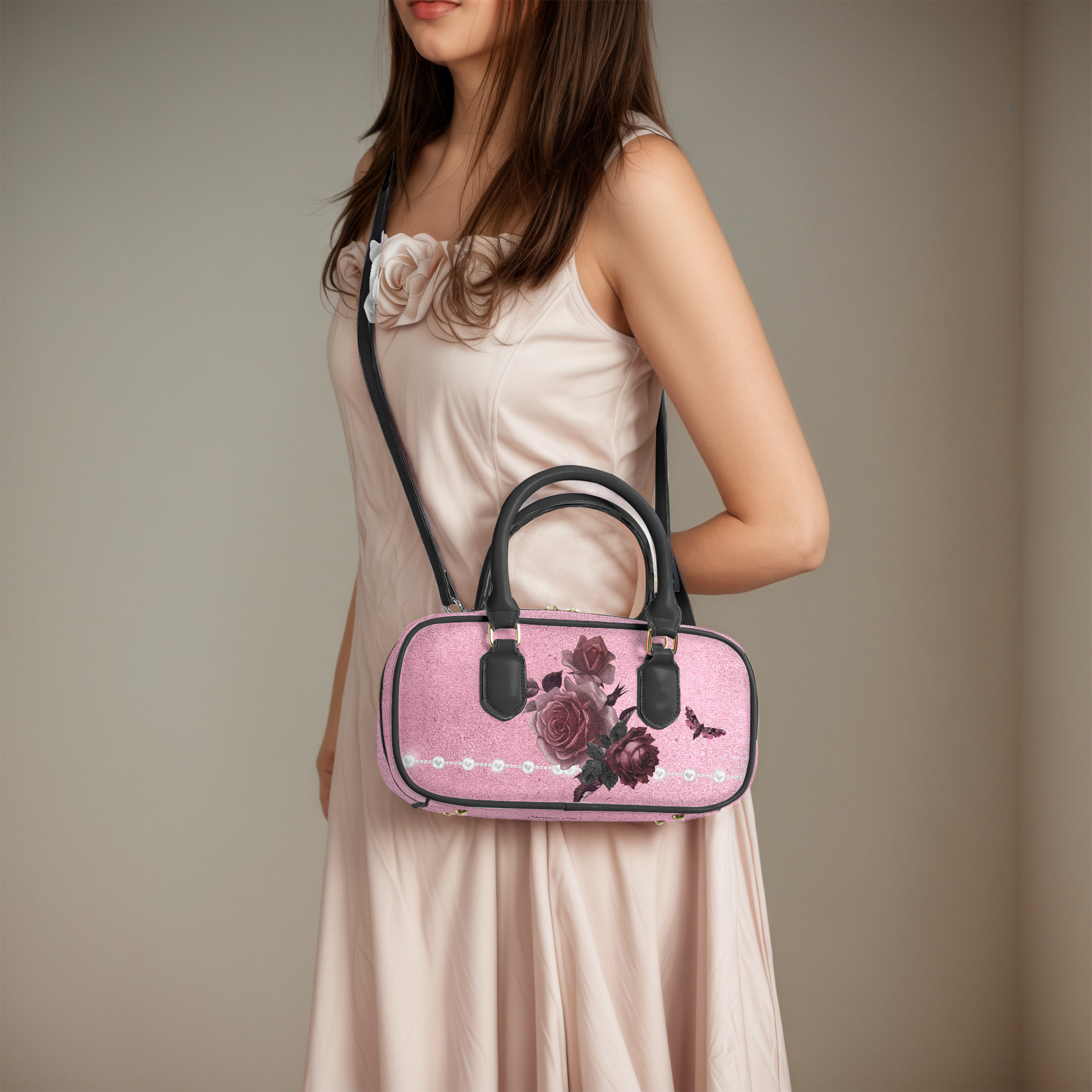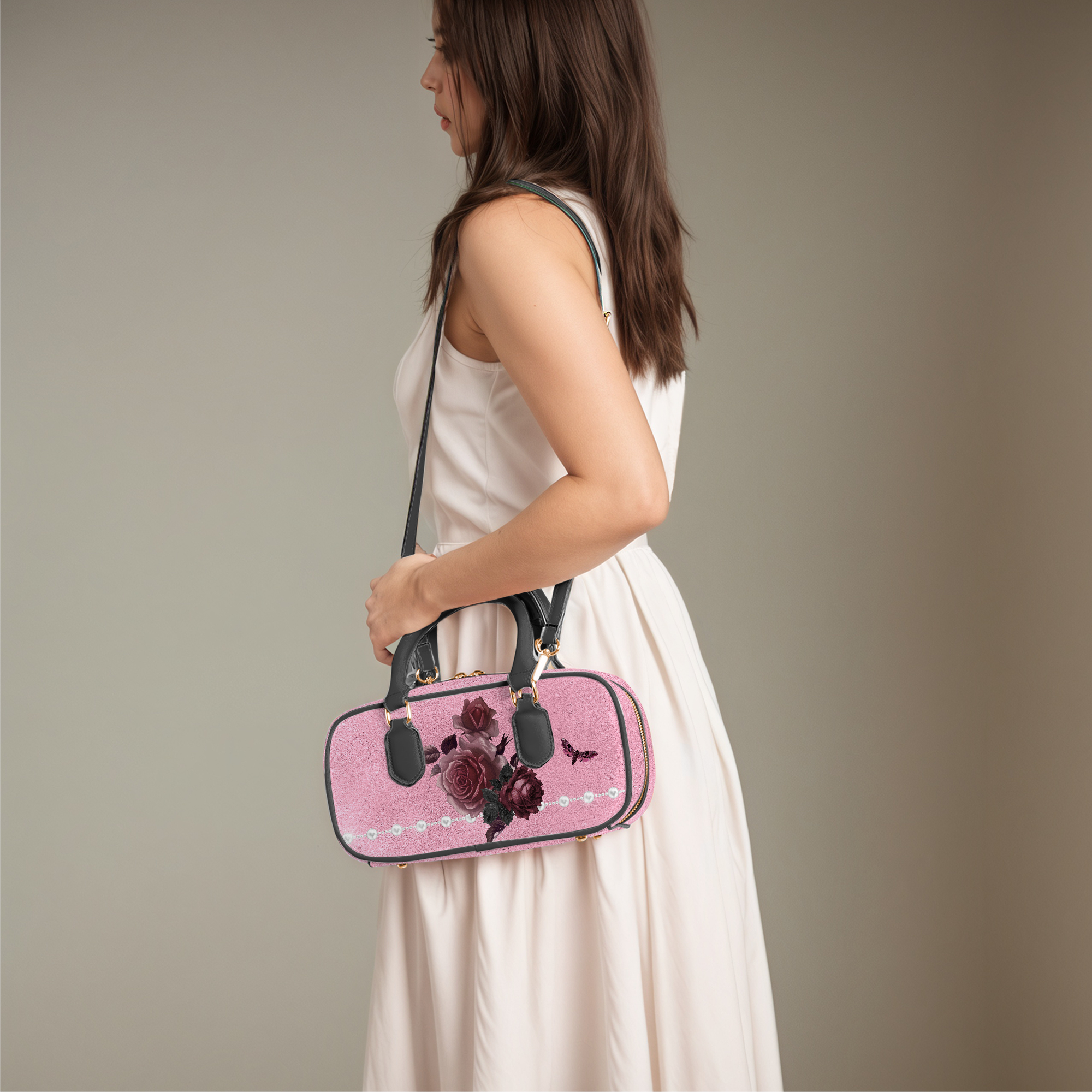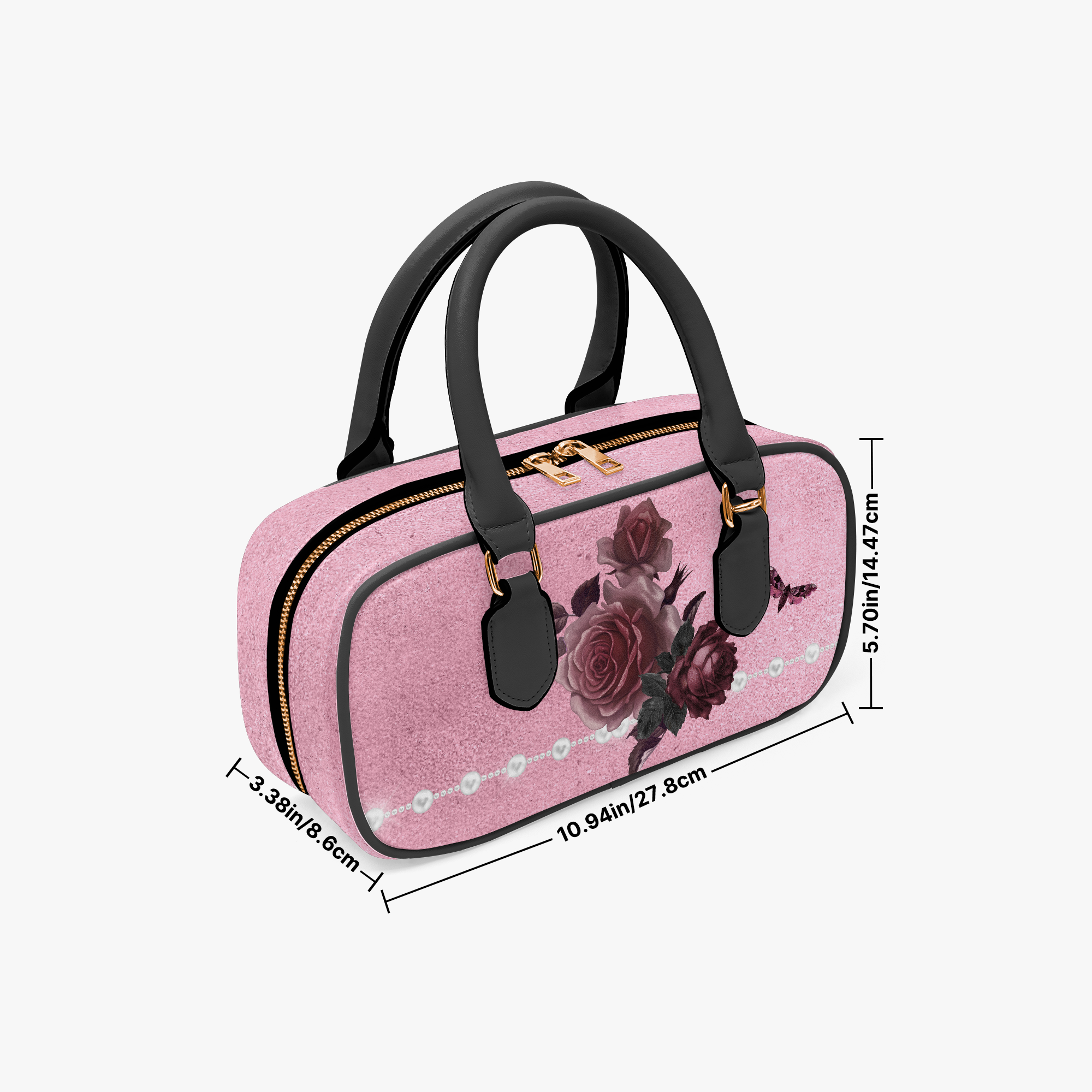 Pink Bordeaux Collection – Top Handle Wide Bag Pink with White Pearl