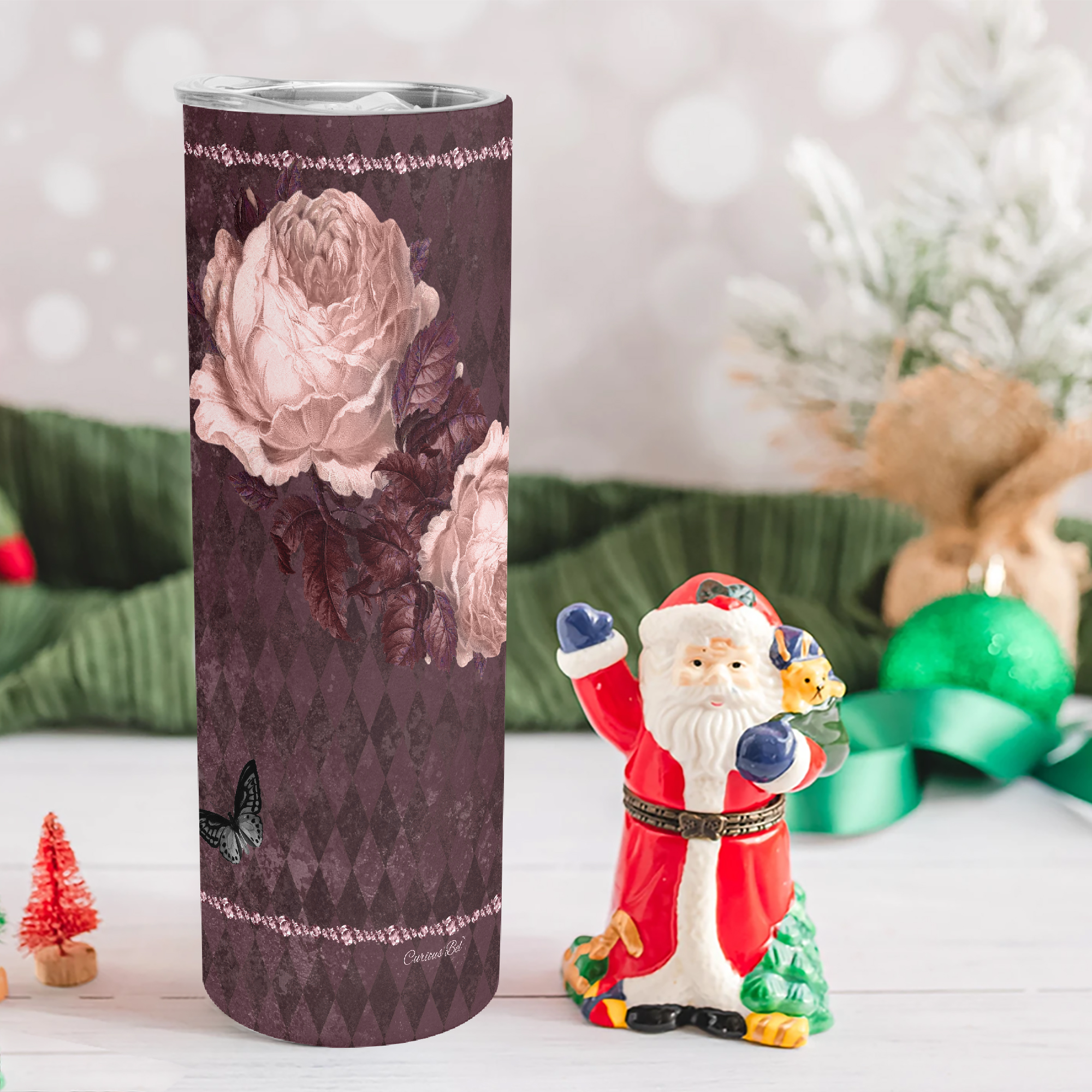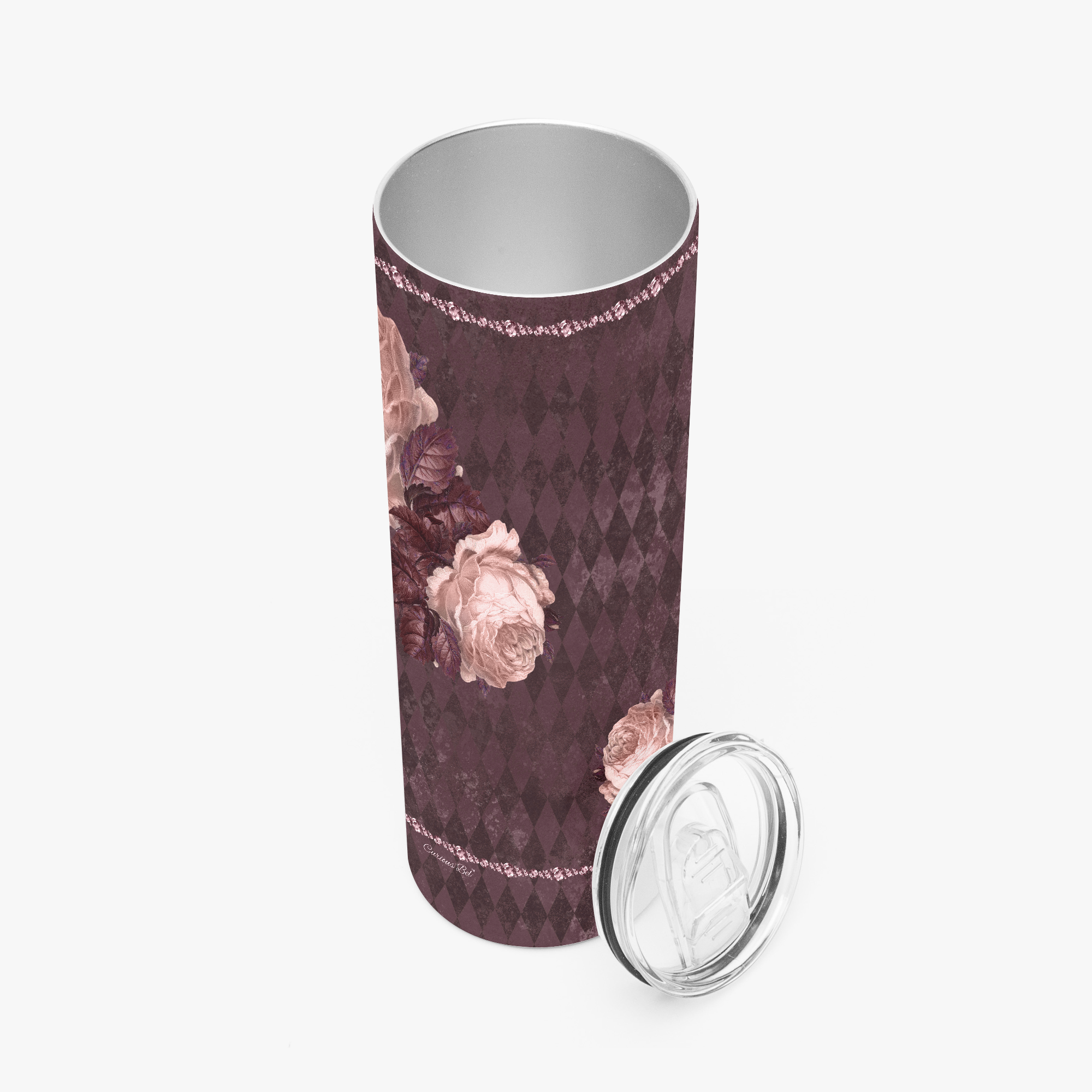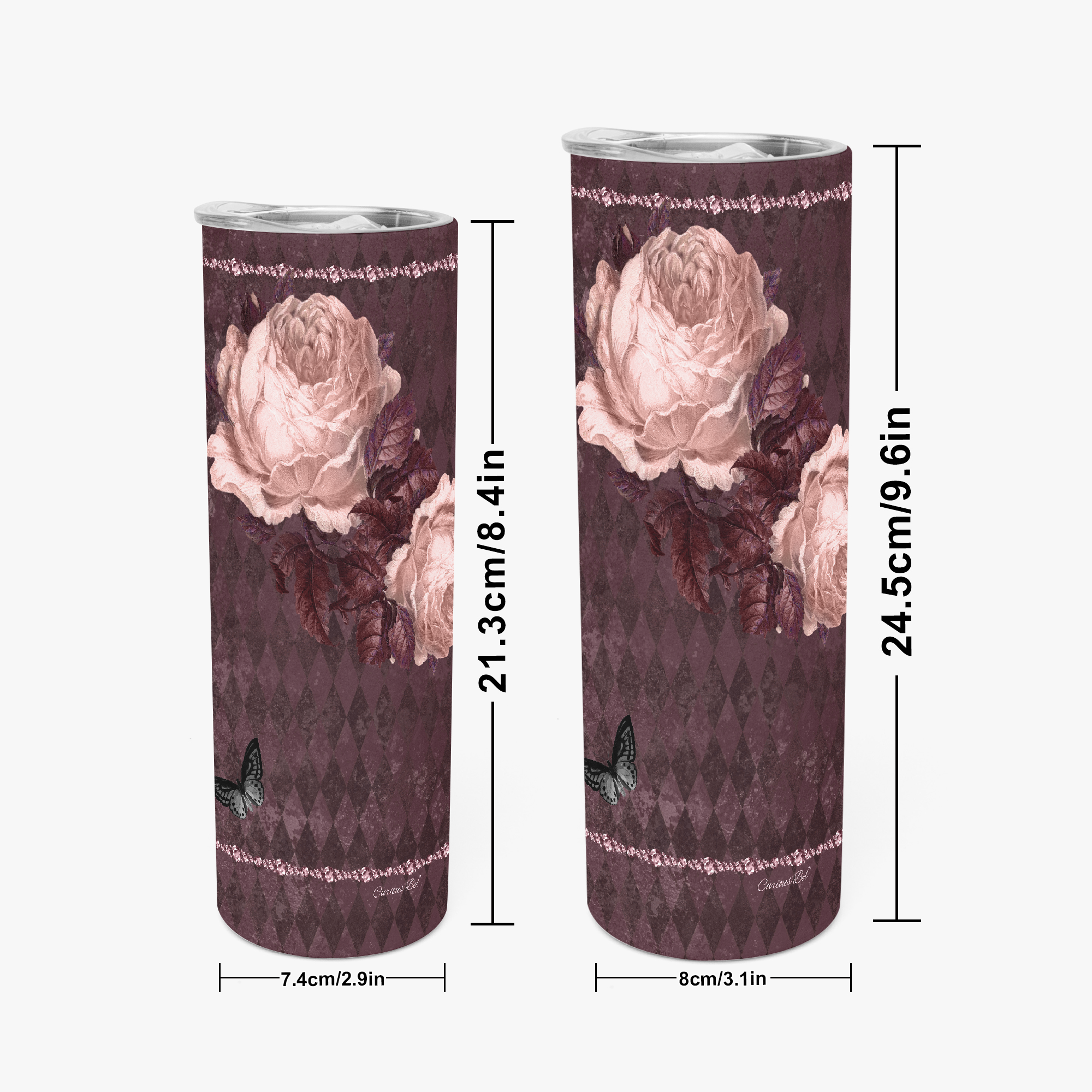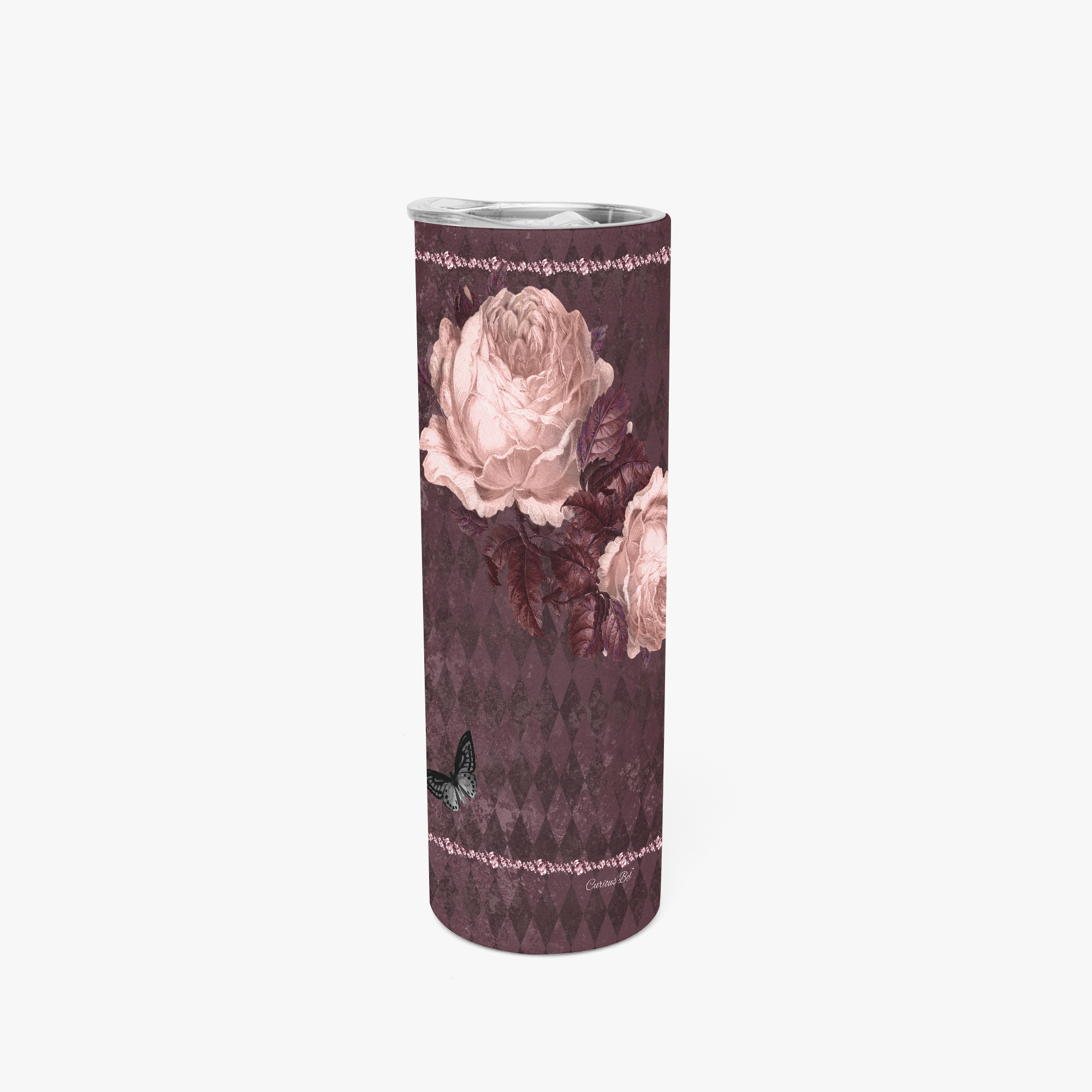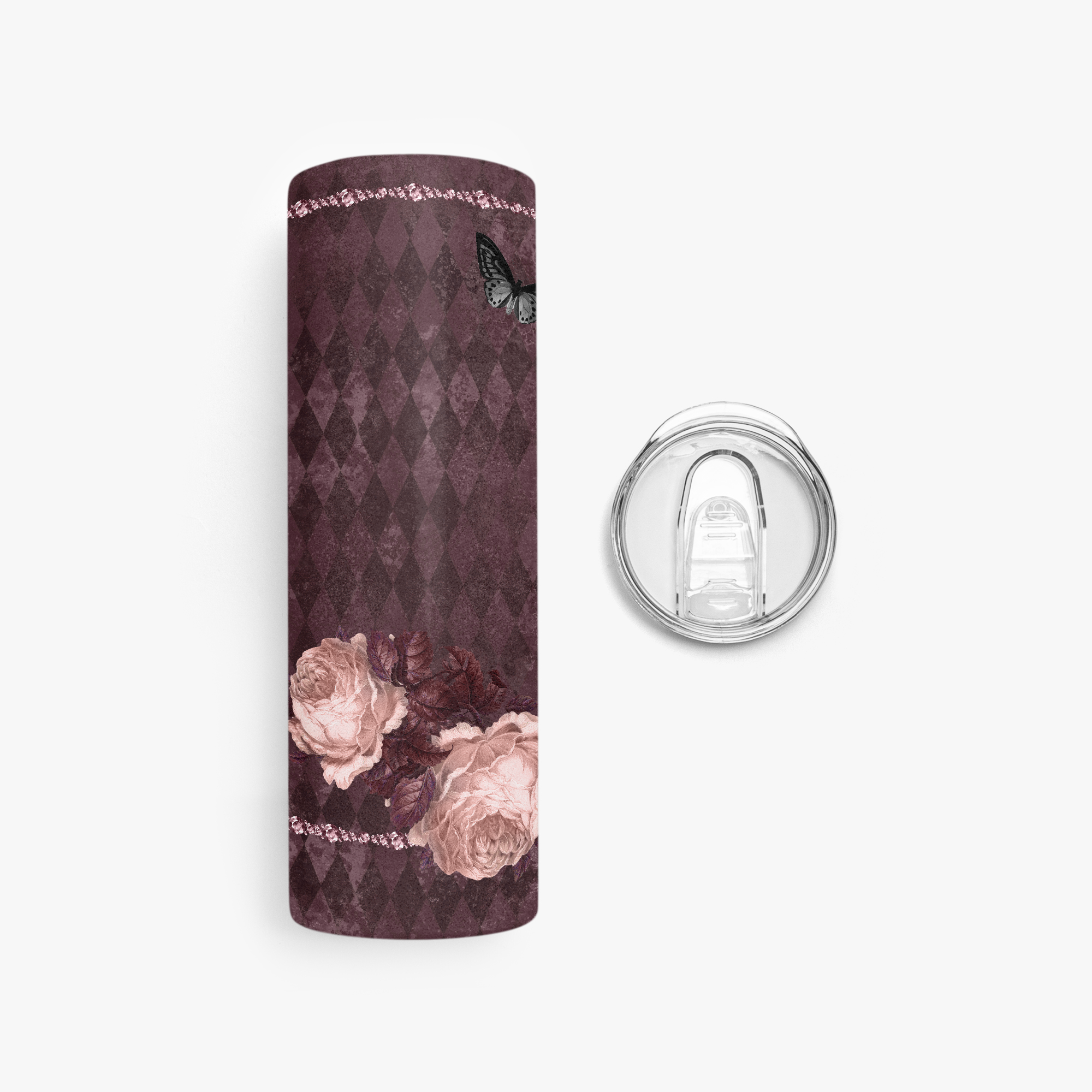 Stressed Burgundy & Rose Collection – 20oz-30oz Straight Skinny Tumbler Burgundy and Pink Rose