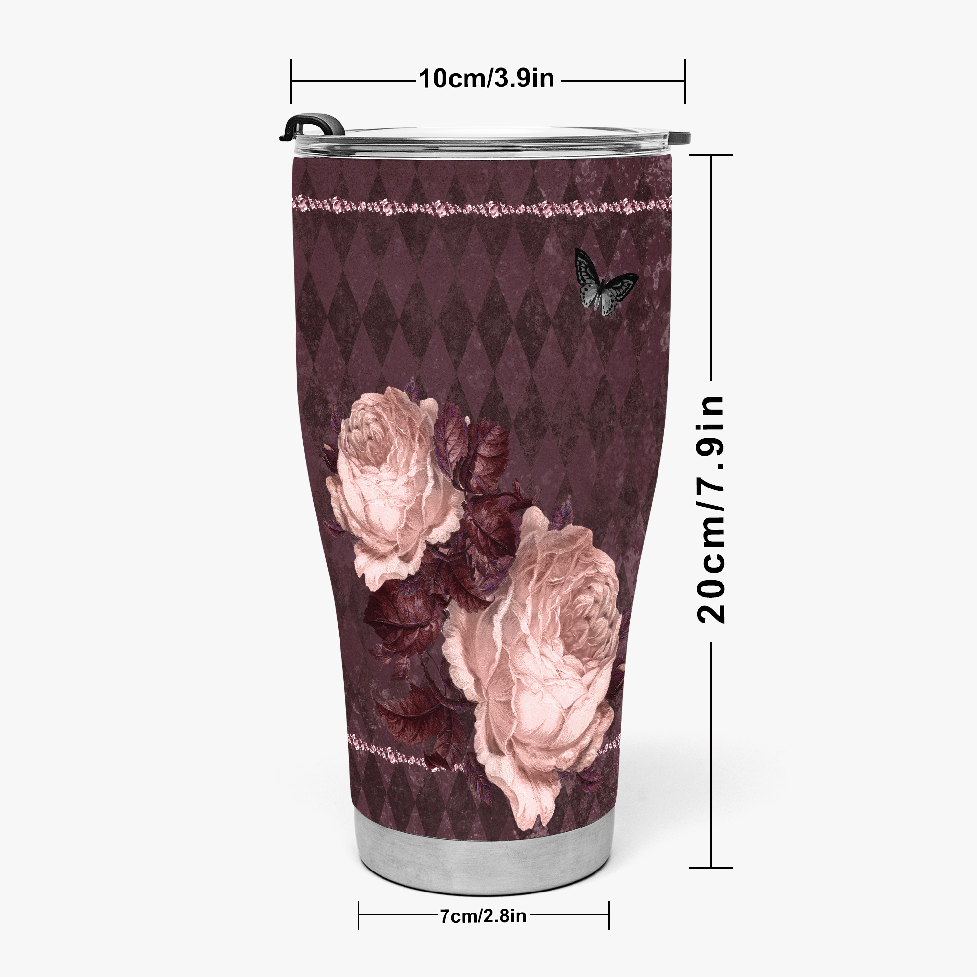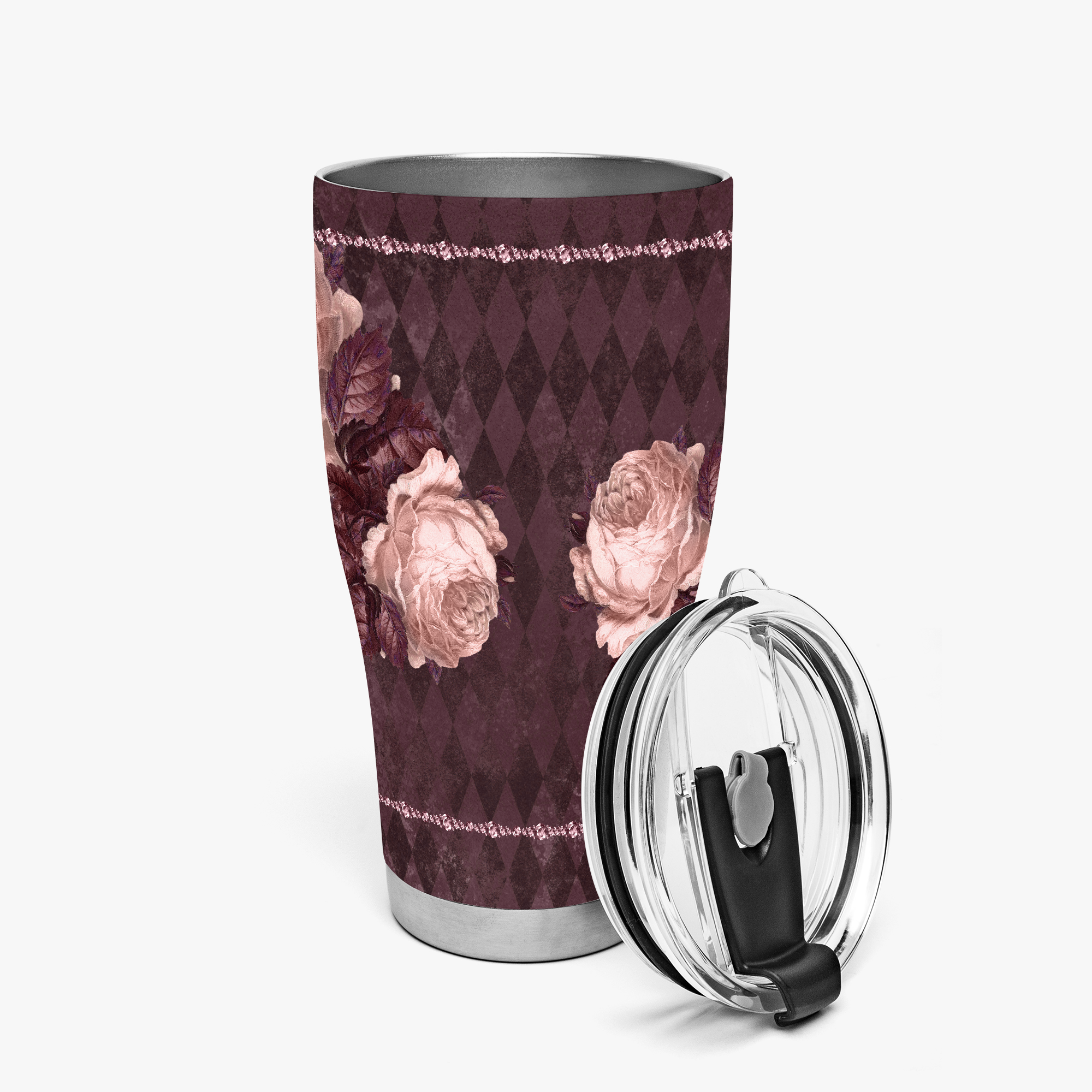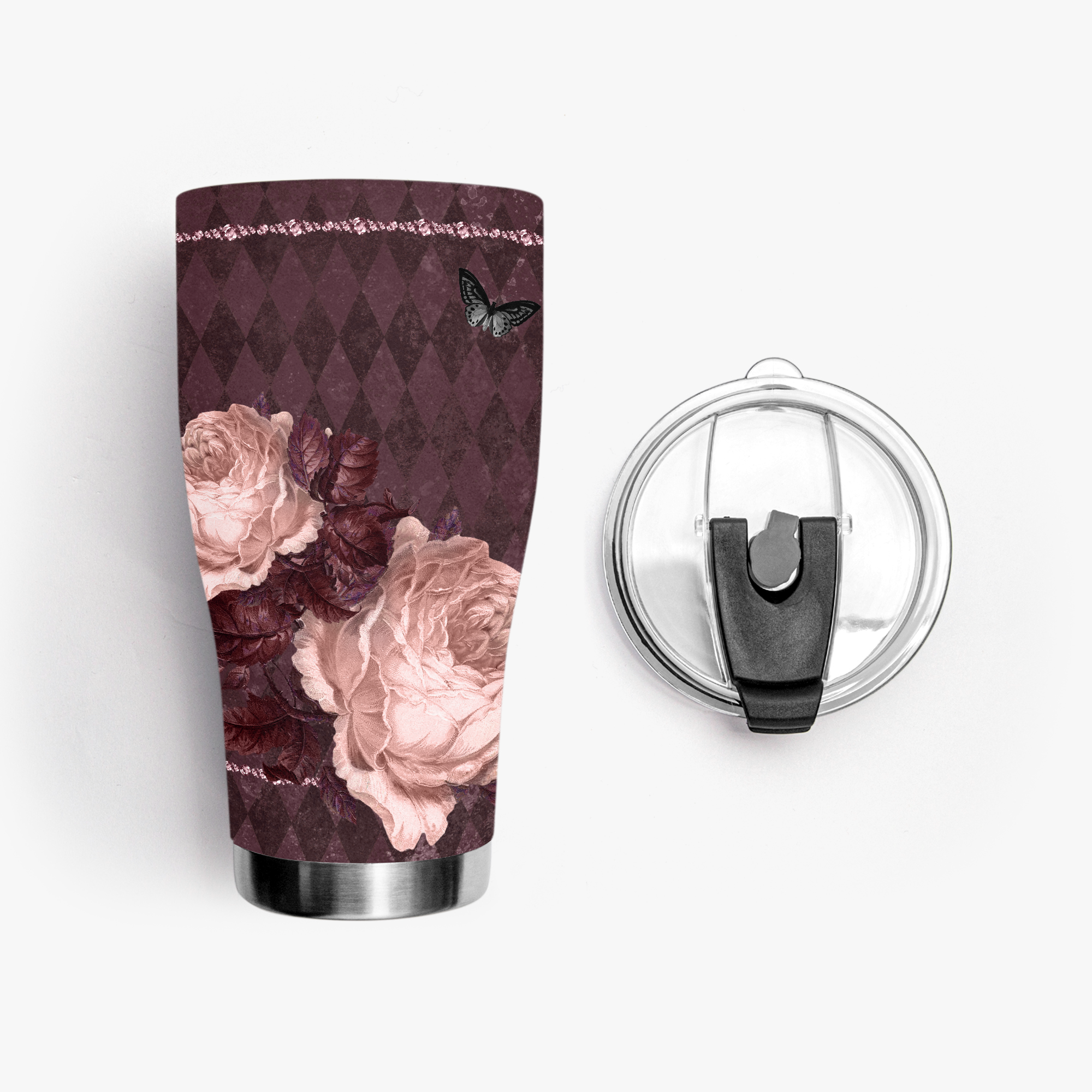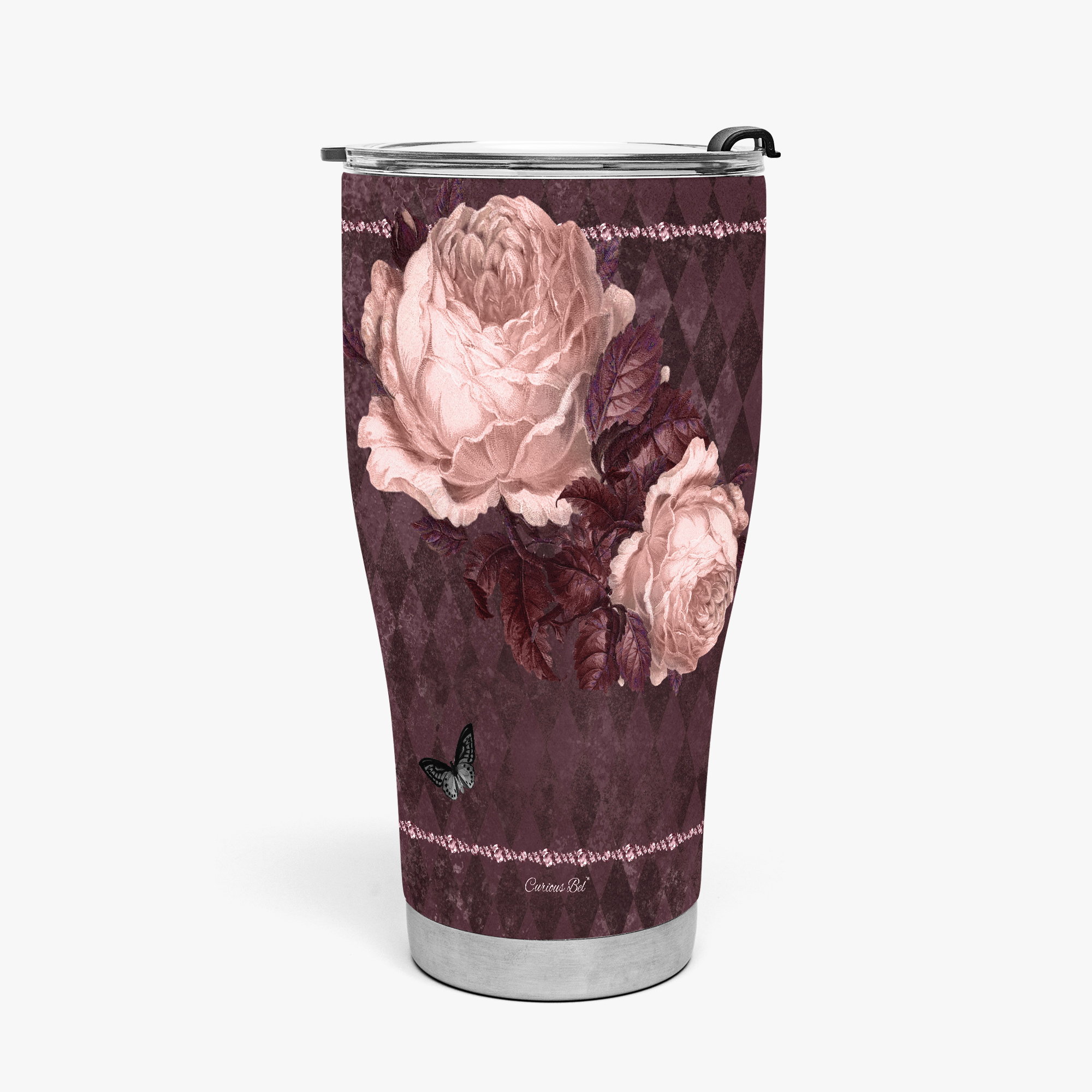 Stressed Burgundy & Rose Collection – 30oz Curved Shiny Tumbler Burgundy and Pink Rose