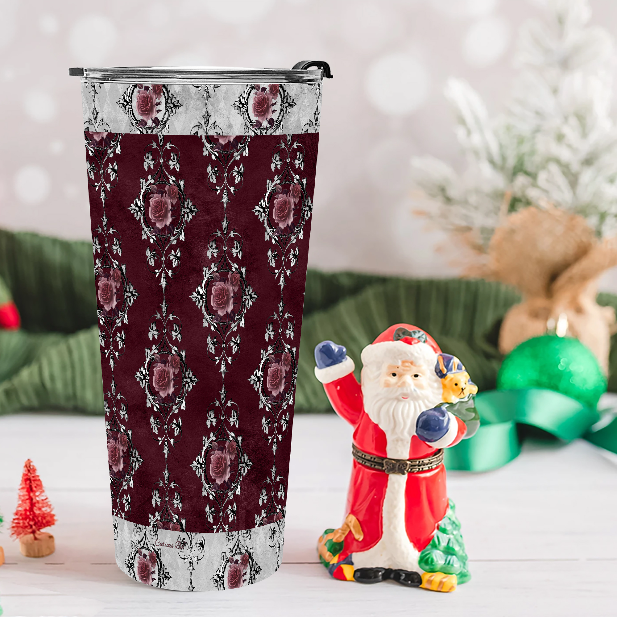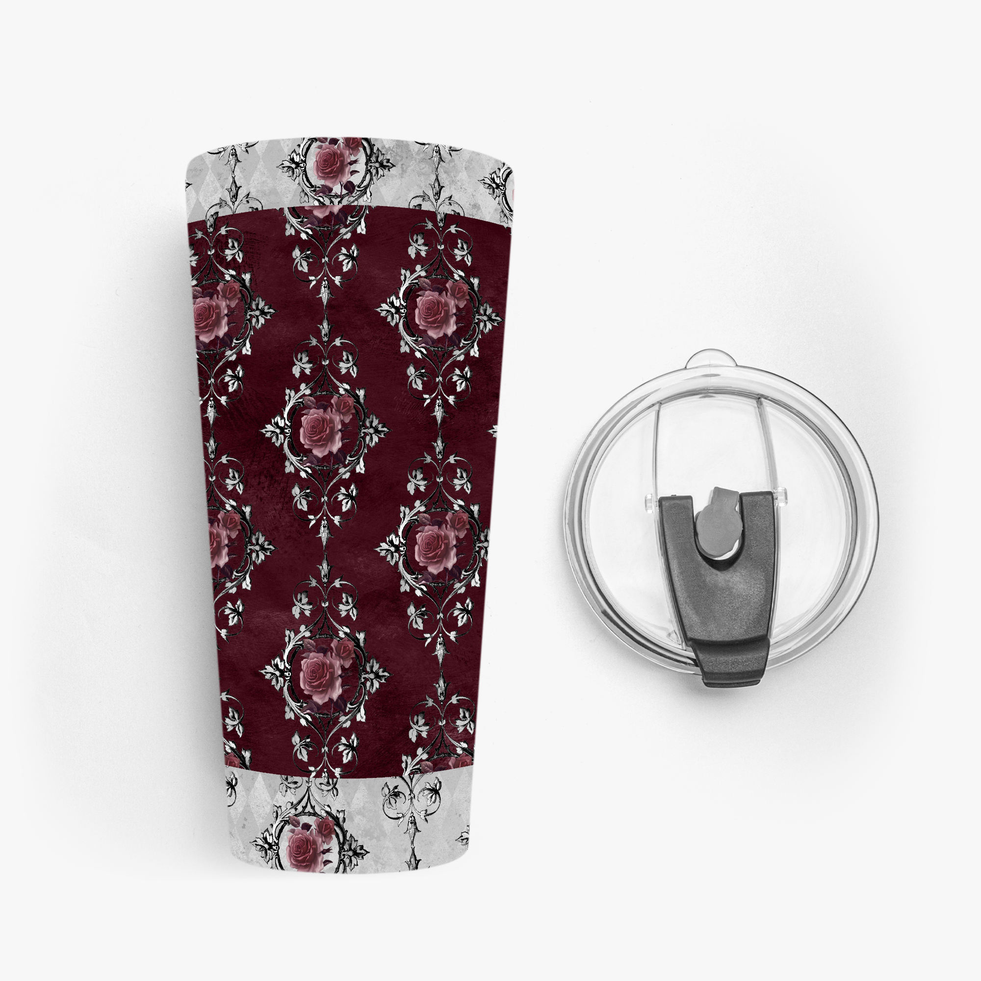 Stressed Burgundy & Rose Collection – 30oz Straight Tumbler Burgundy and Pink Rose Damask