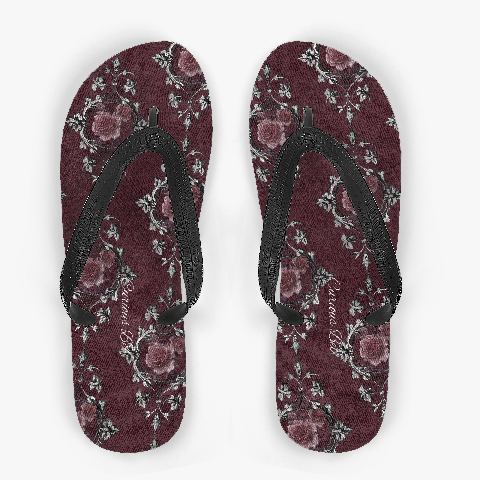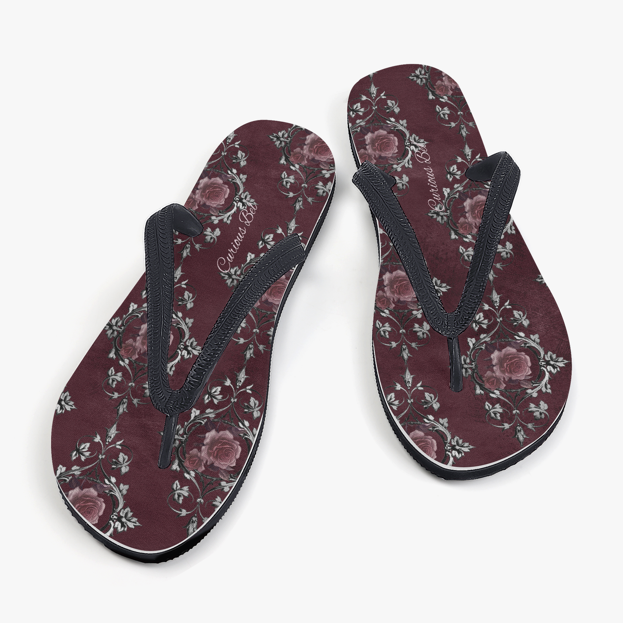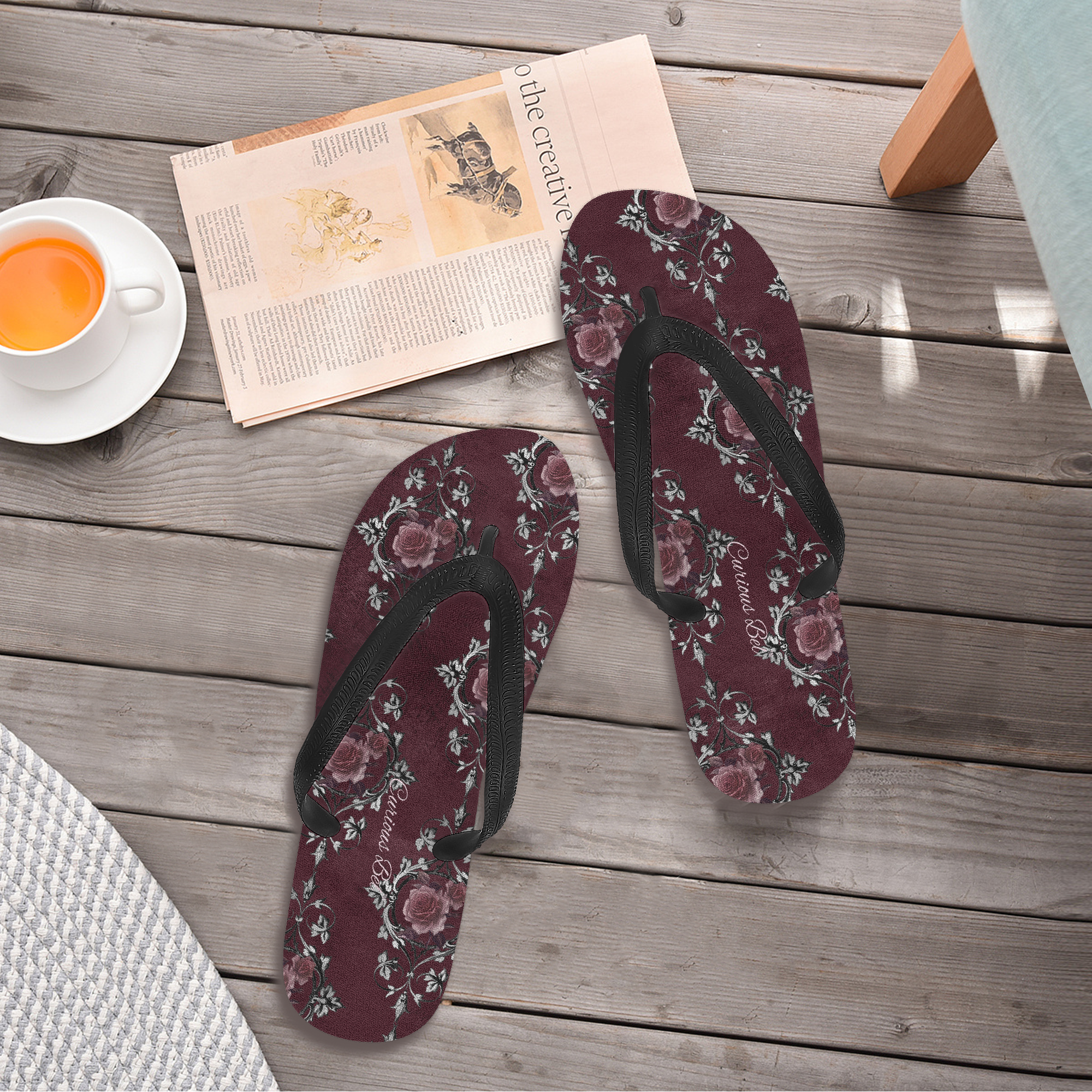 Stressed Burgundy & Rose Collection – Classic Flip Flops Burgundy with Pink Rose Damask