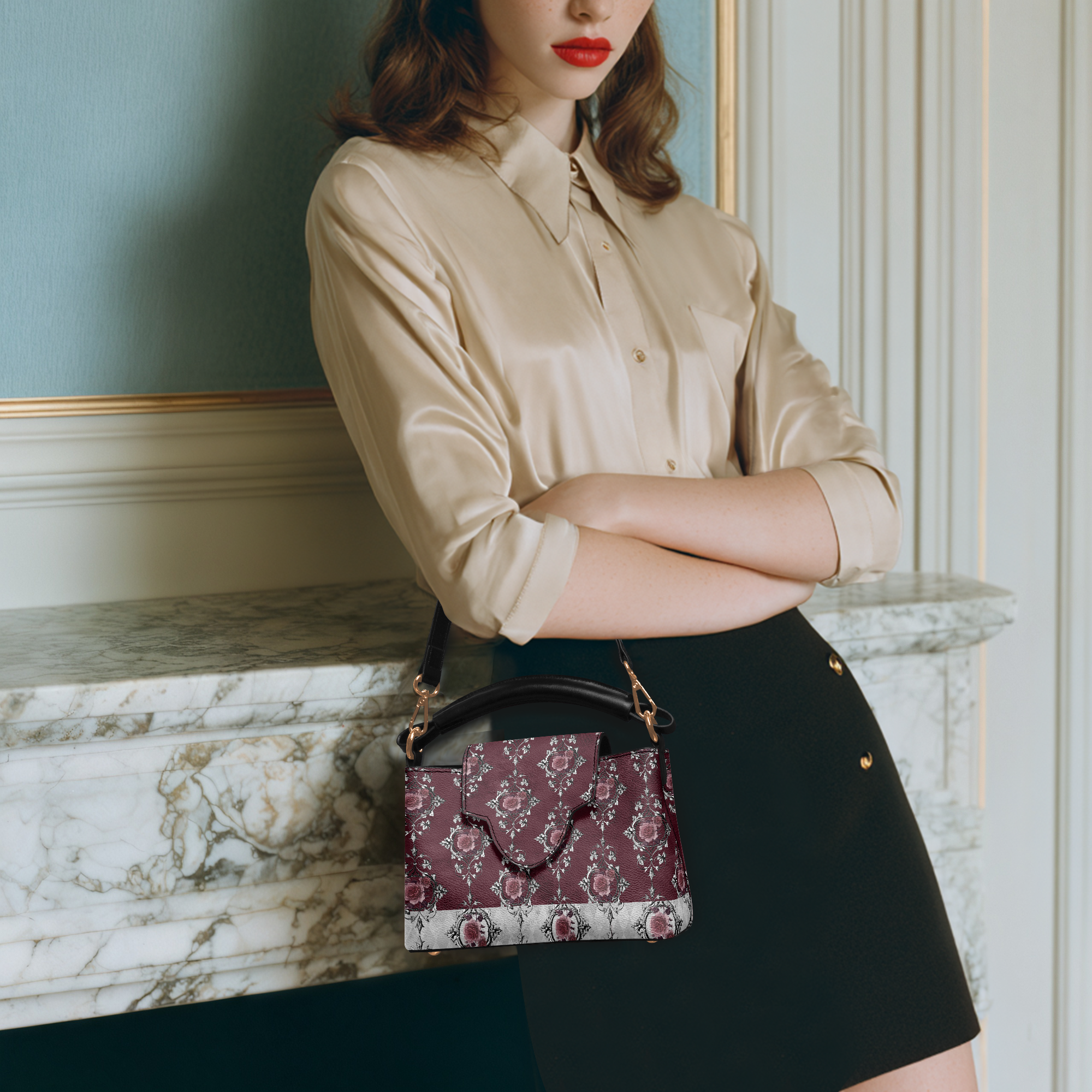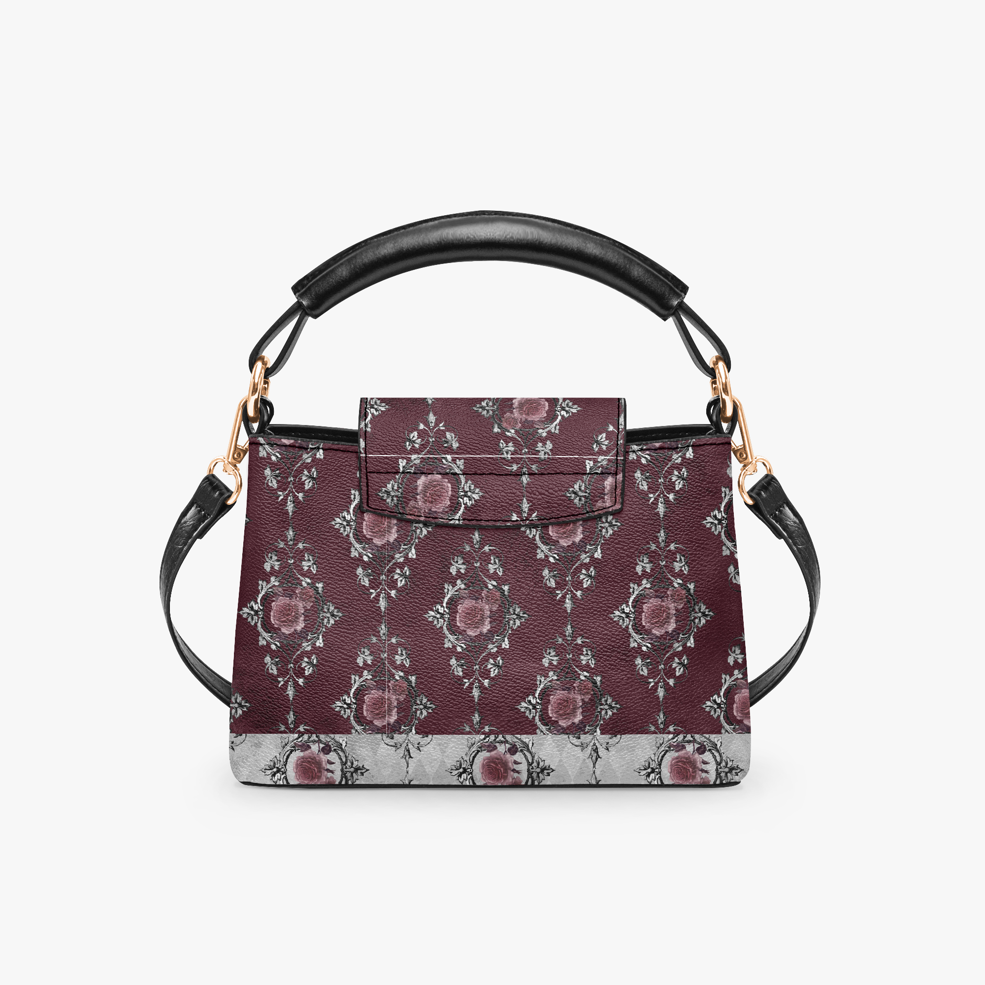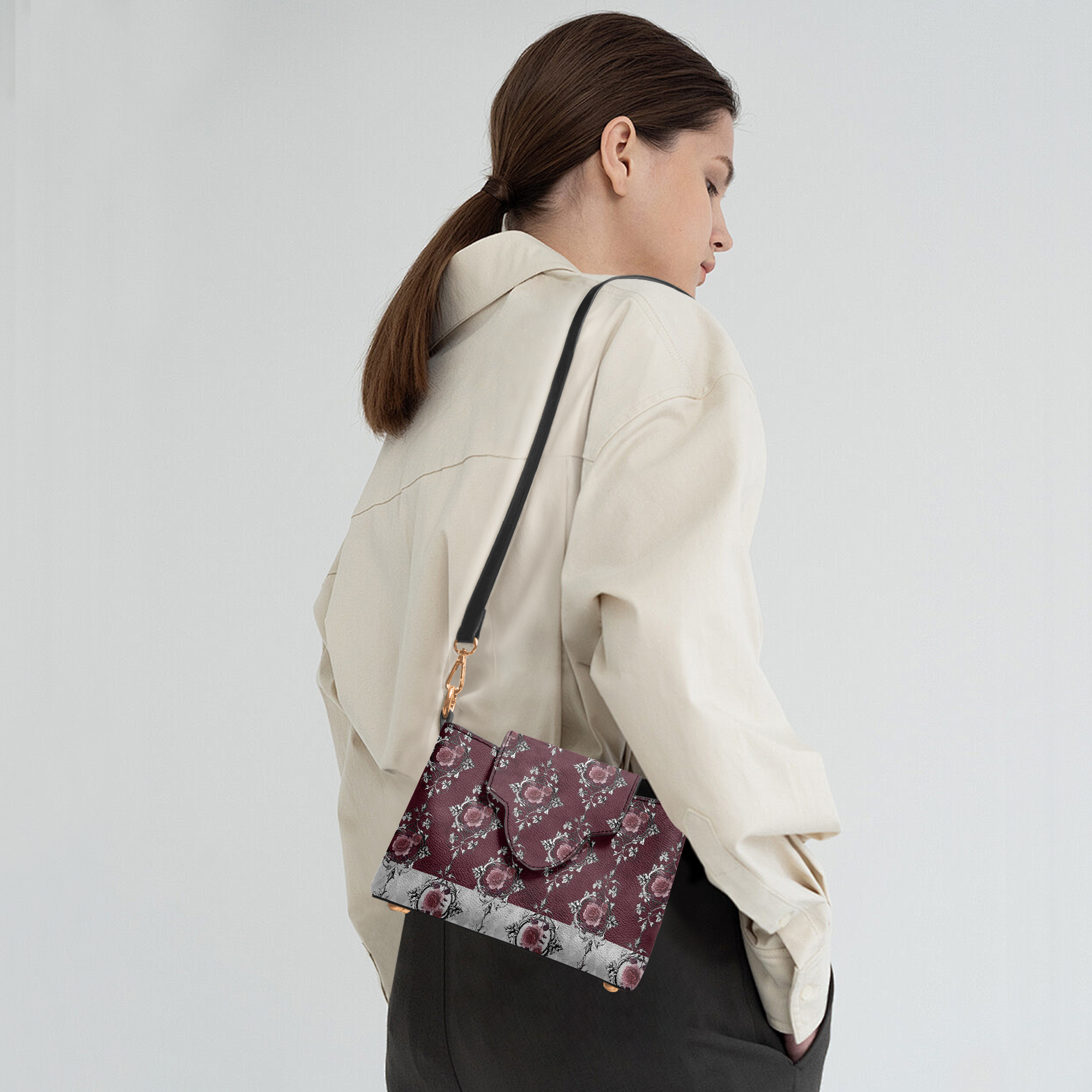 Stressed Burgundy & Rose Collection – Mini Delicate Crossbody Bag Burgundy with Pink Rose Damask