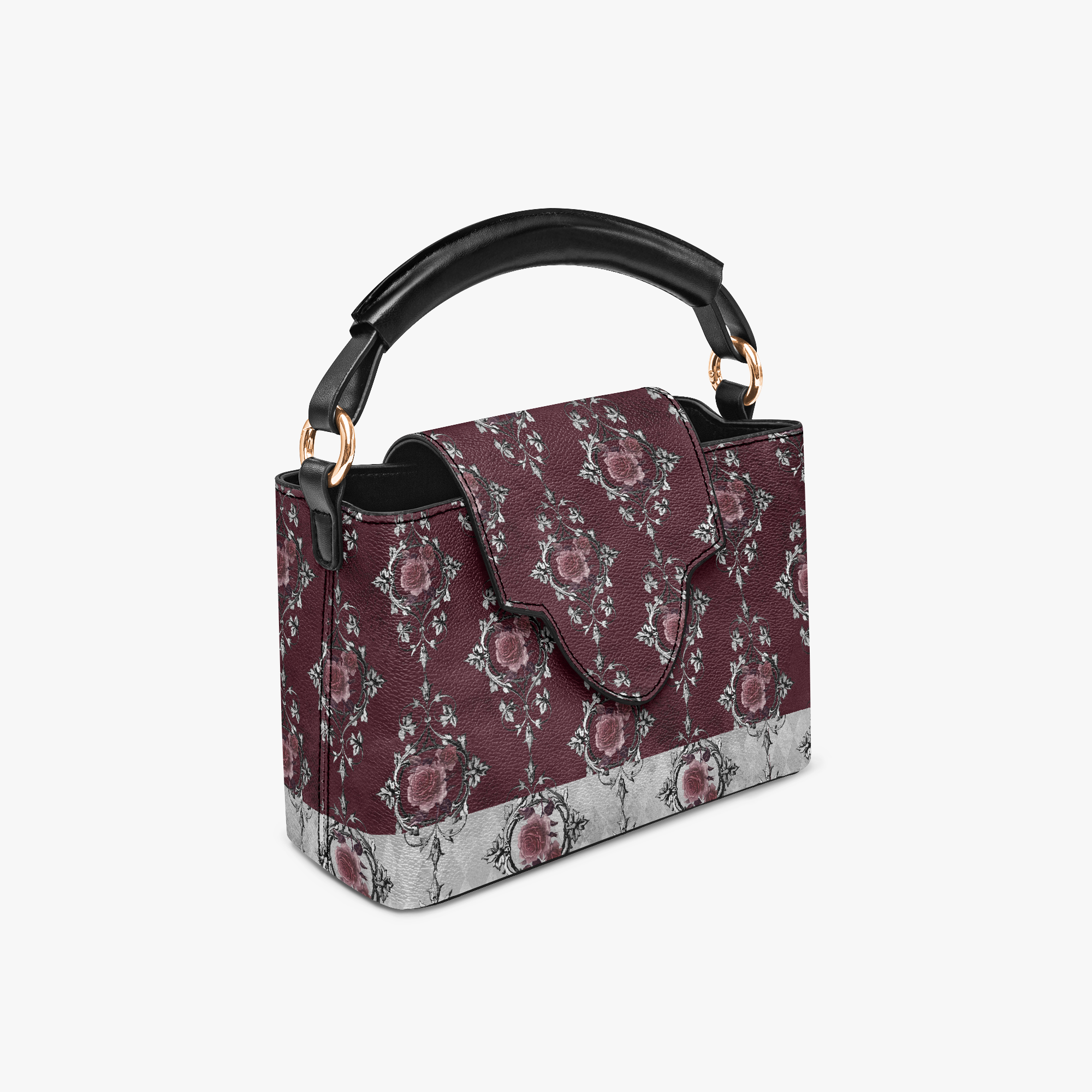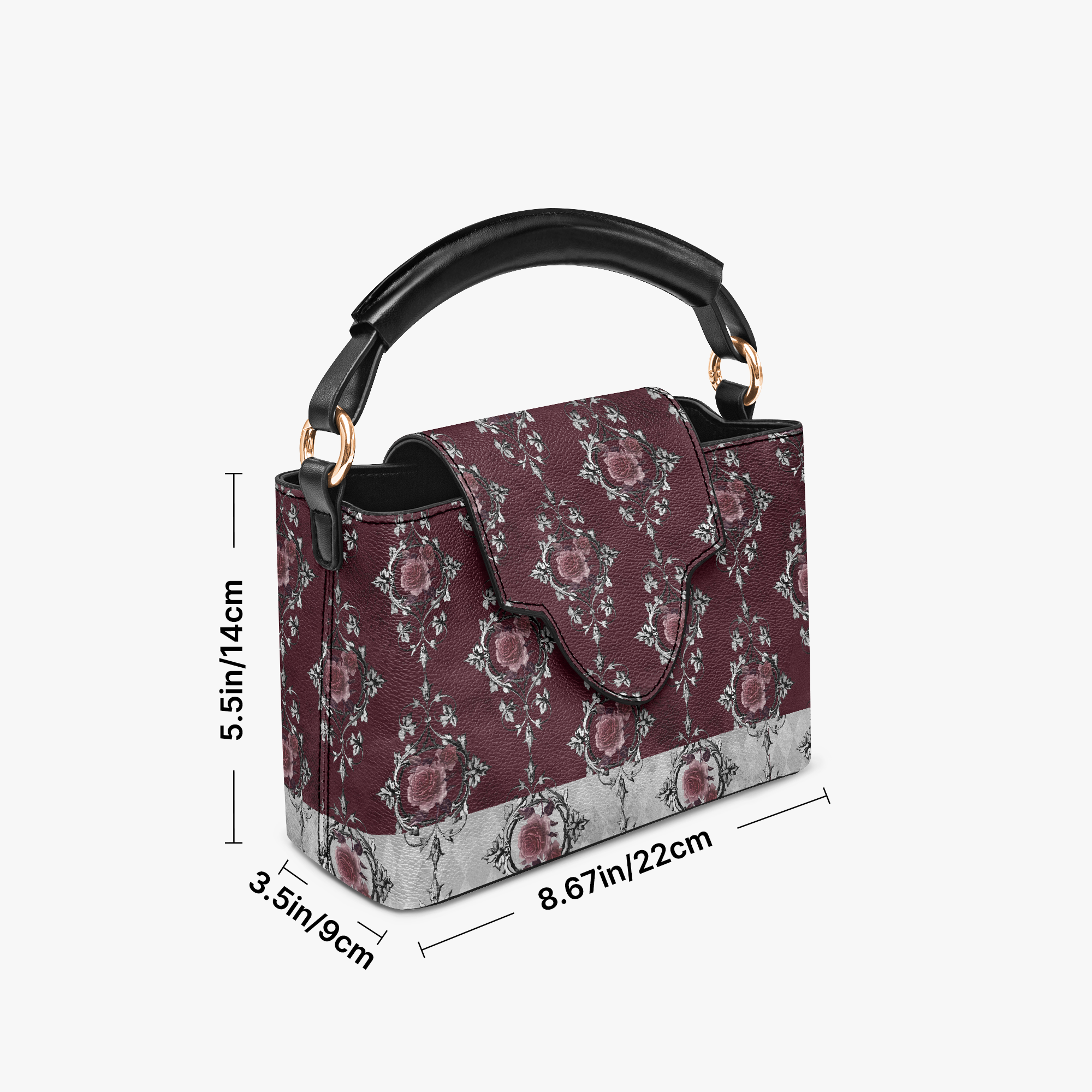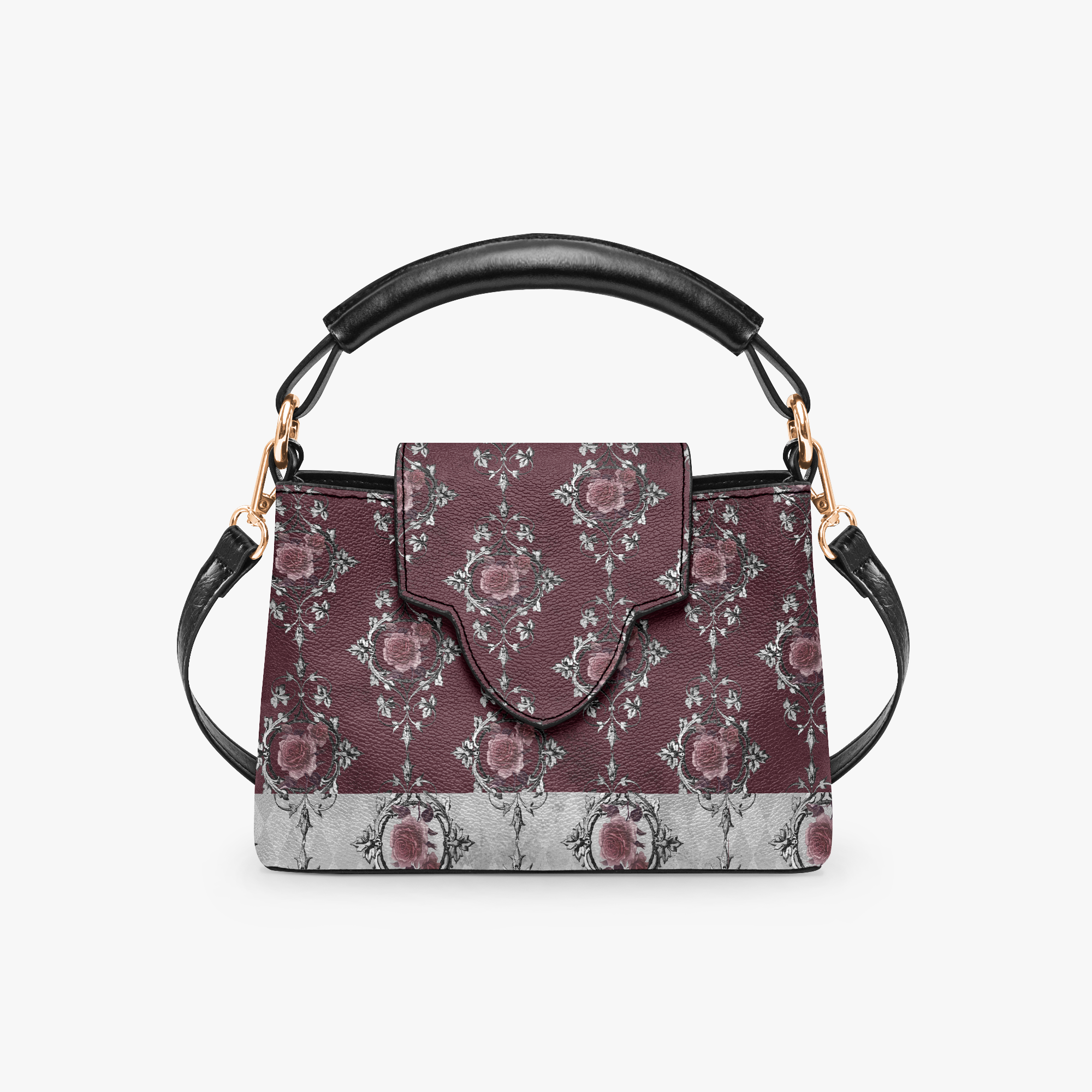 Stressed Burgundy & Rose Collection – Mini Delicate Crossbody Bag Burgundy with Pink Rose Damask