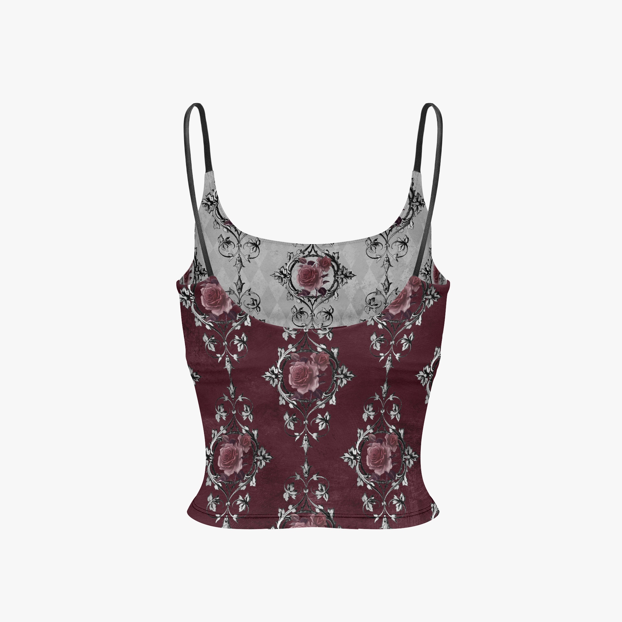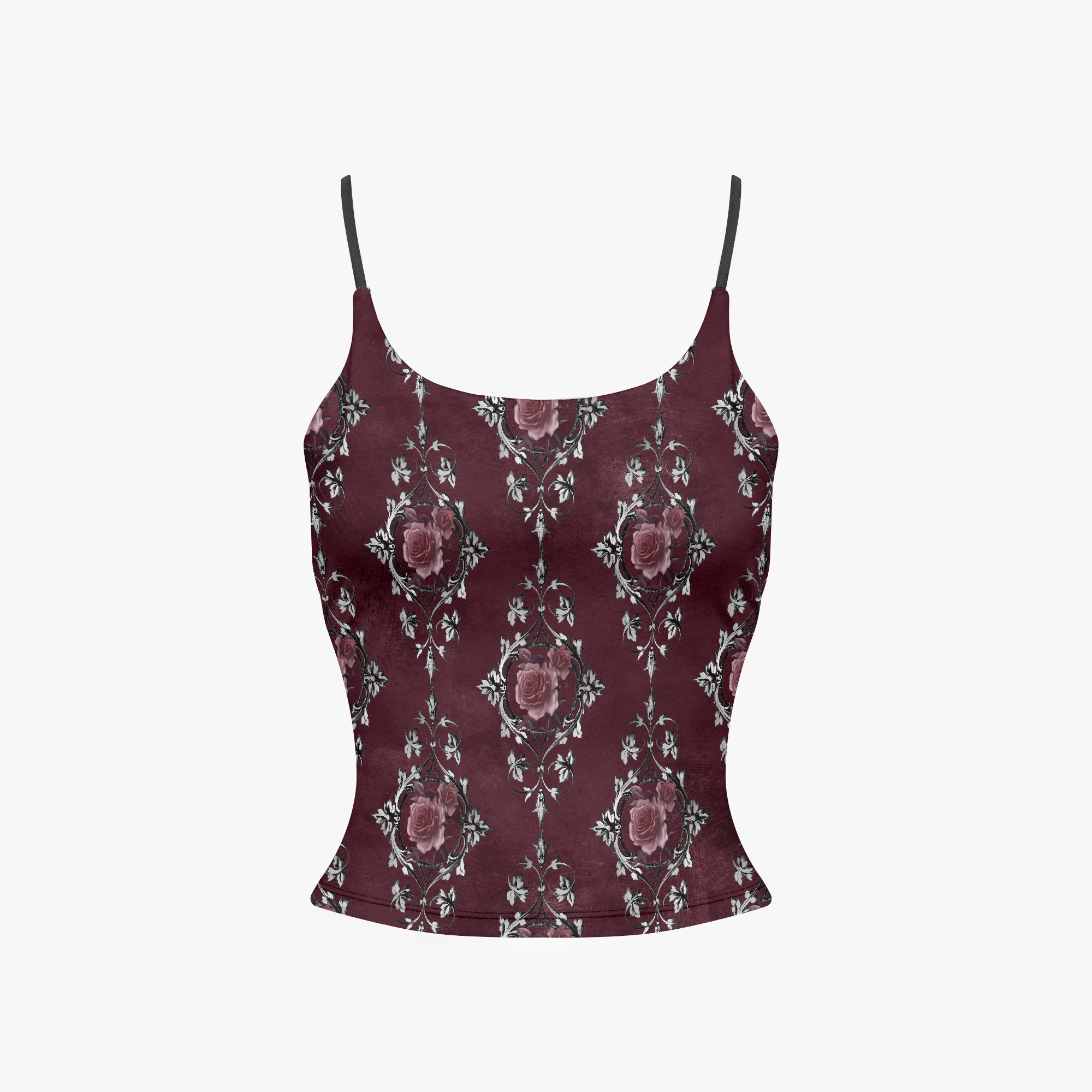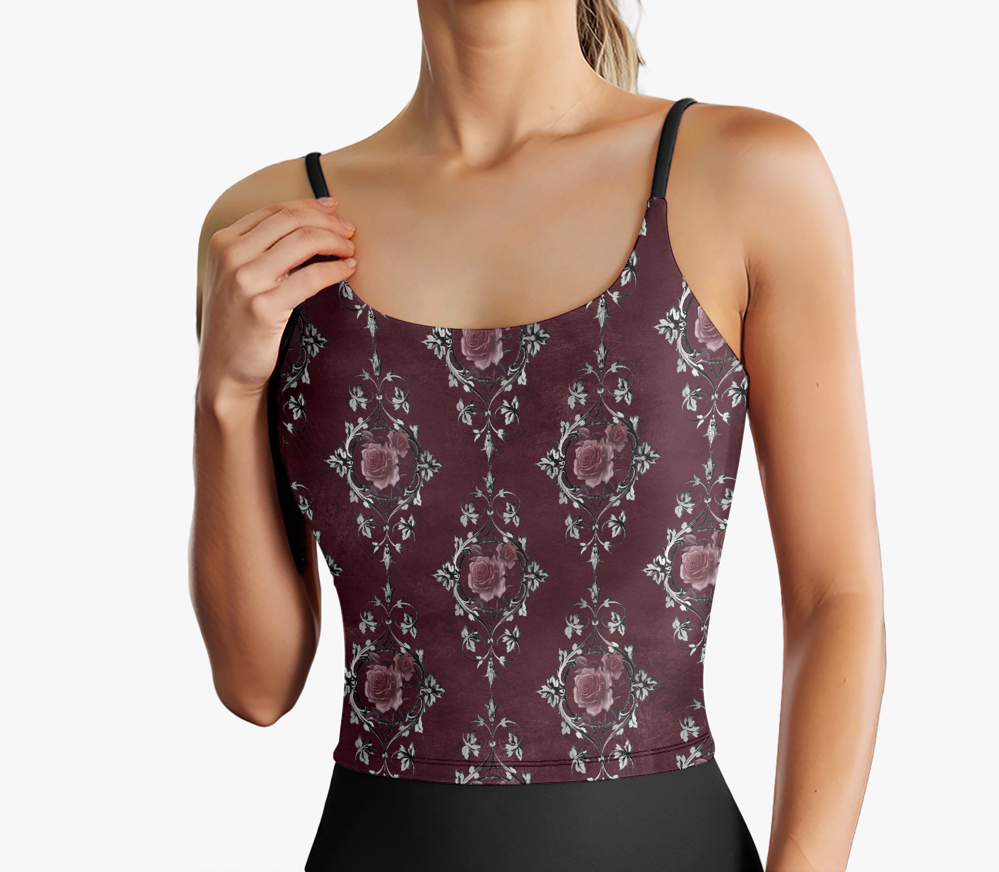 Stressed Burgundy & Rose Collection – Thin Strap Top Burgundy and Pink Rose Damask