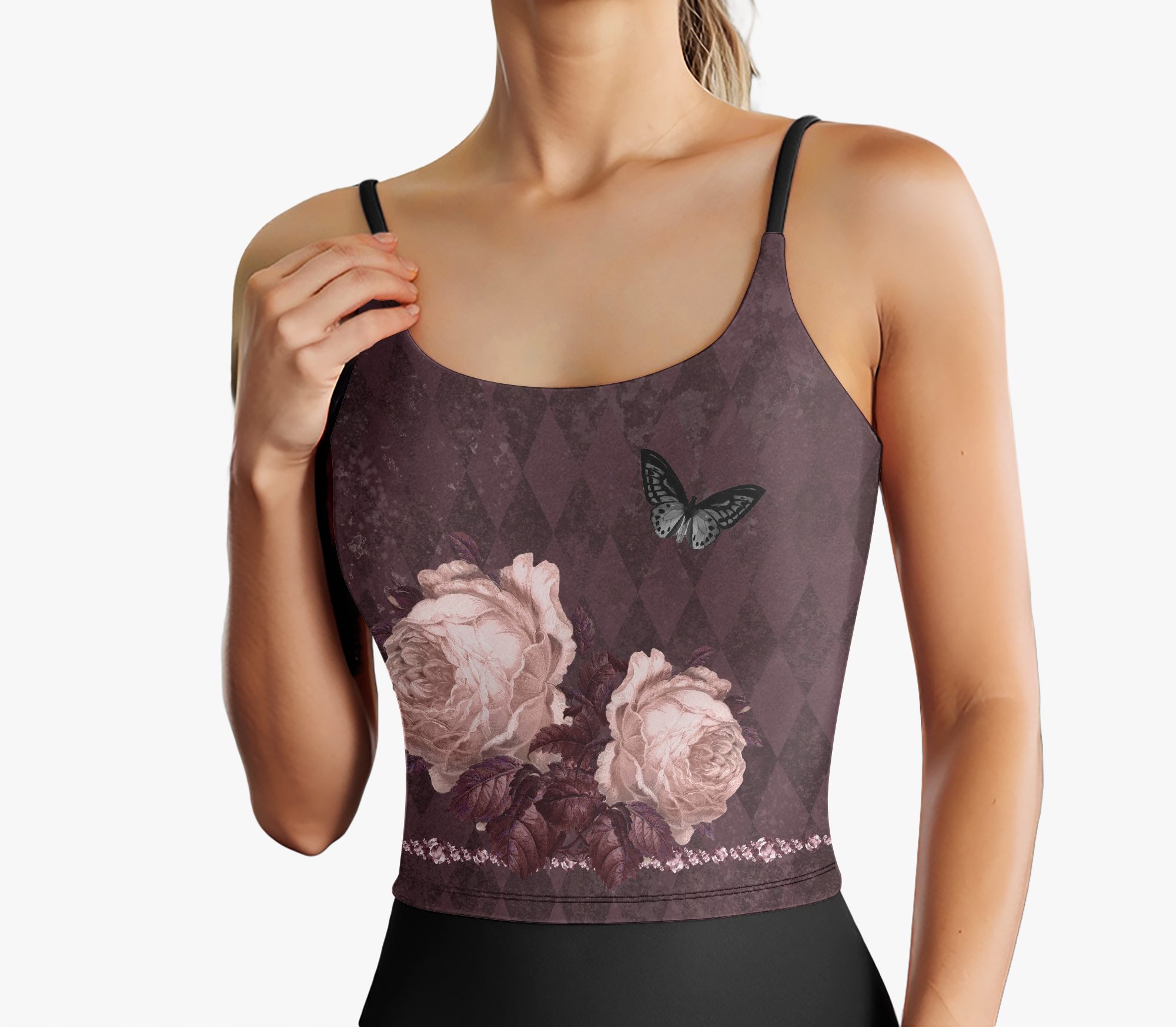 Stressed Burgundy & Rose Collection – Thin Strap Top Burgundy and Pink Rose