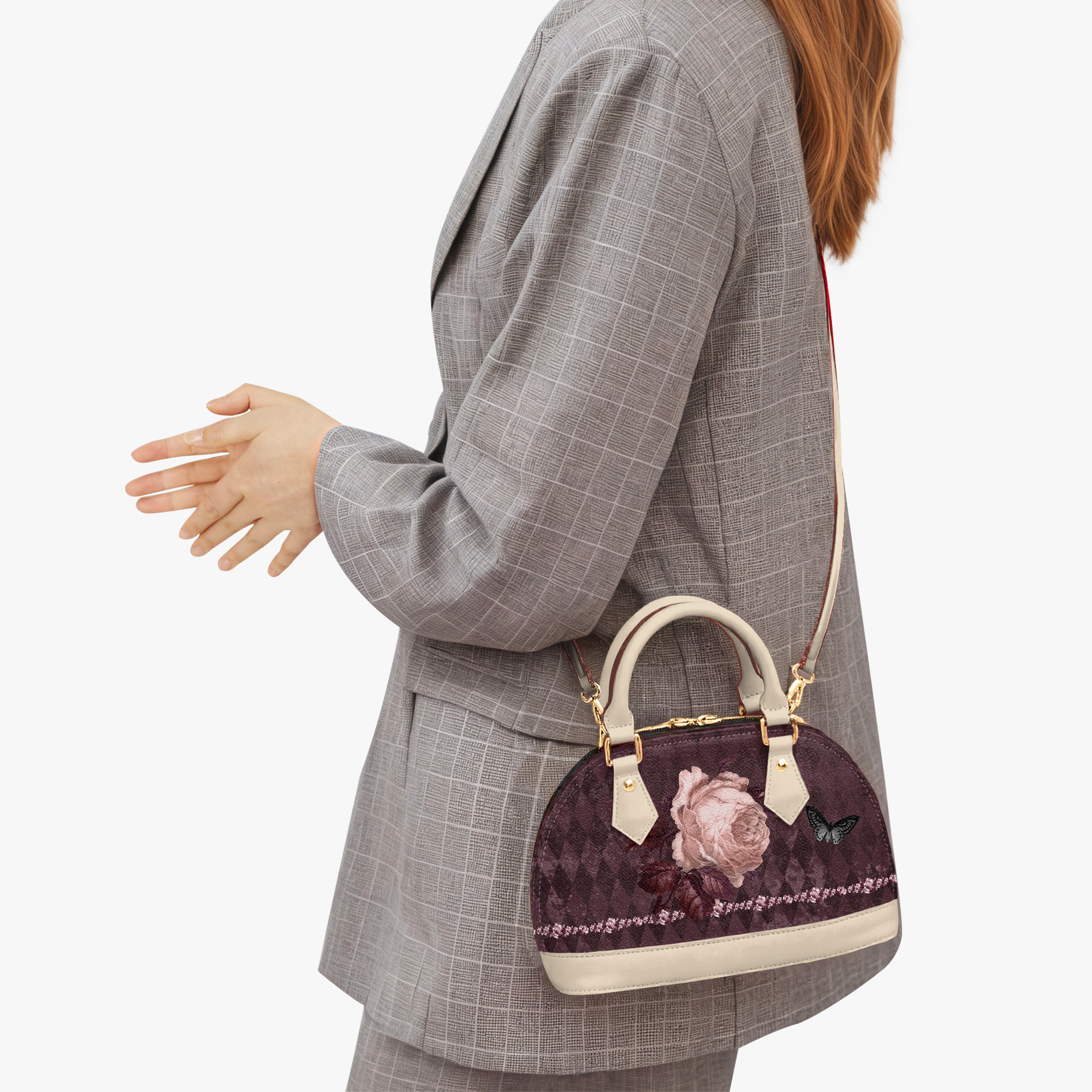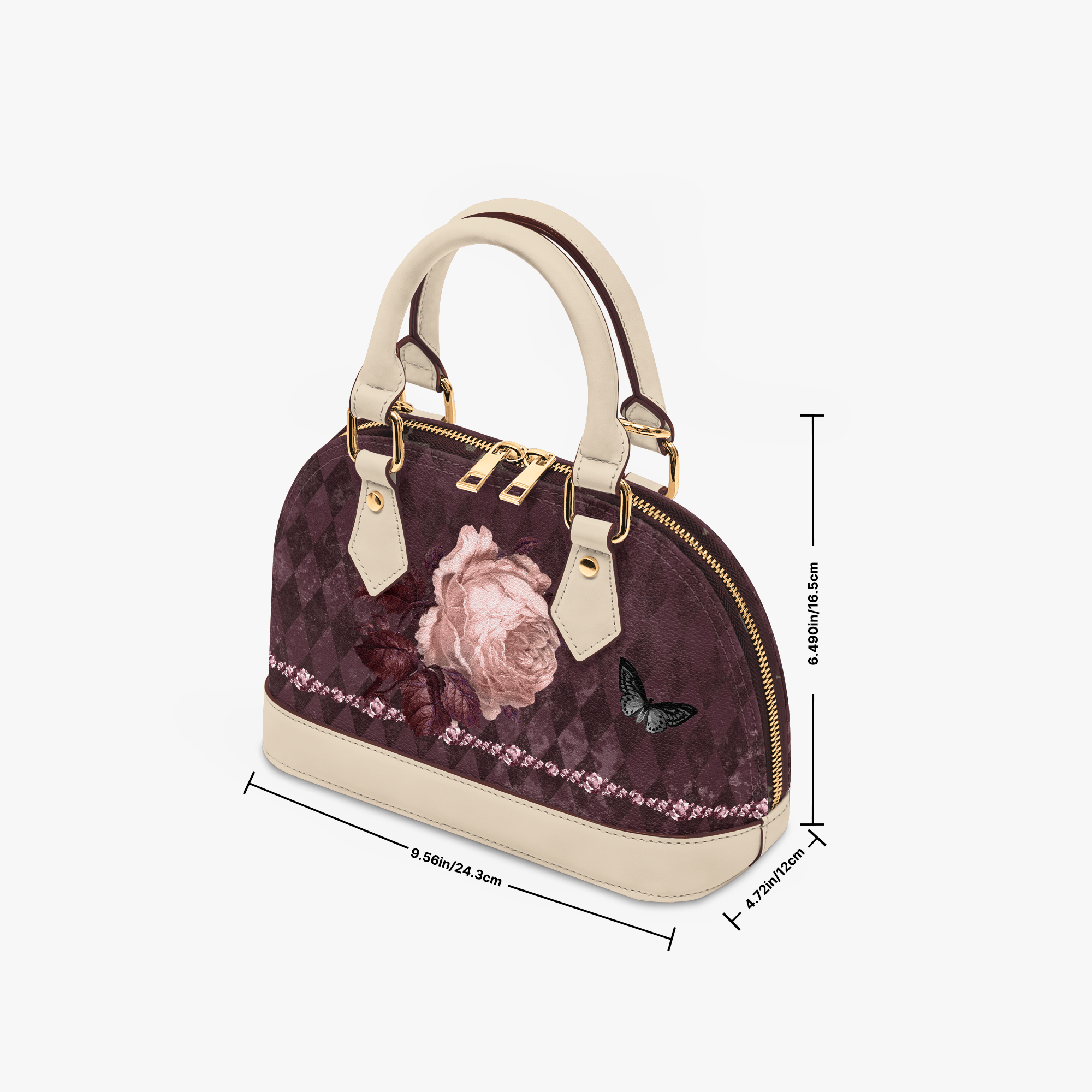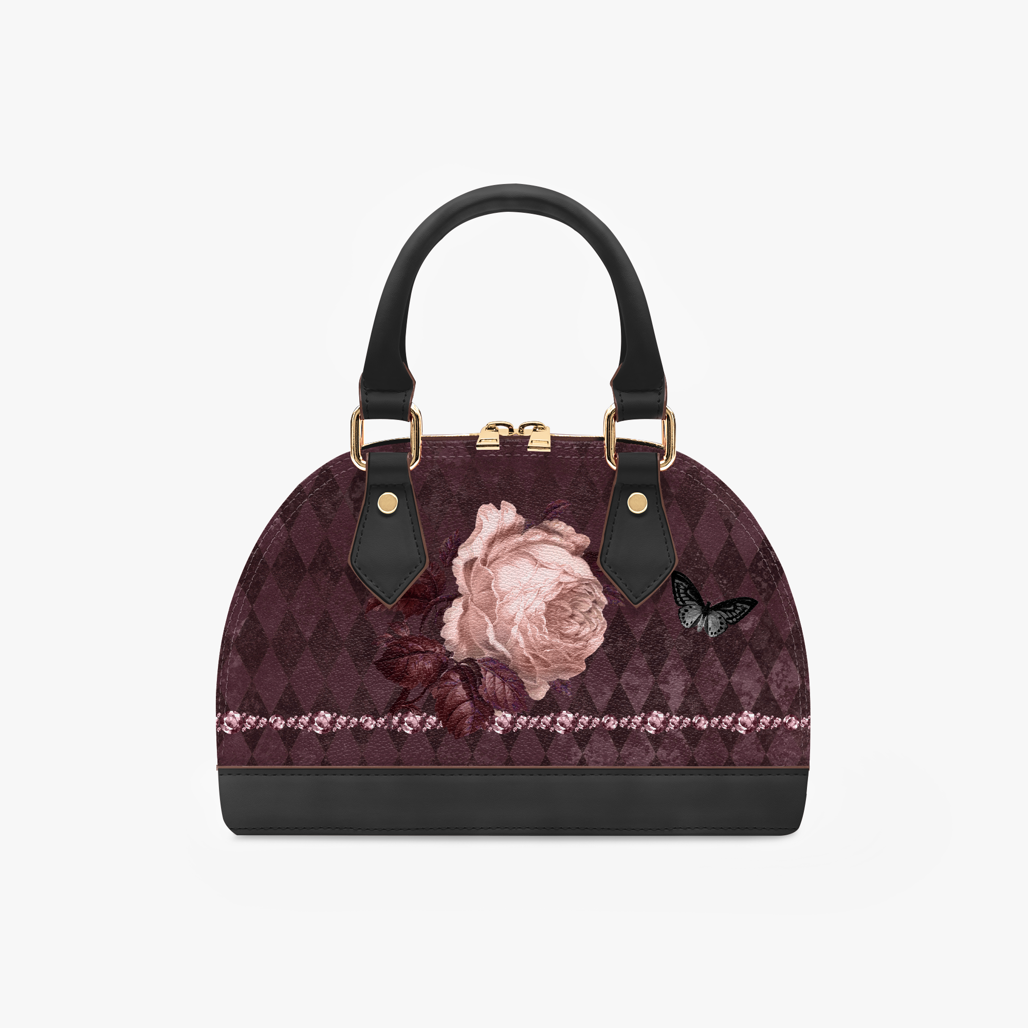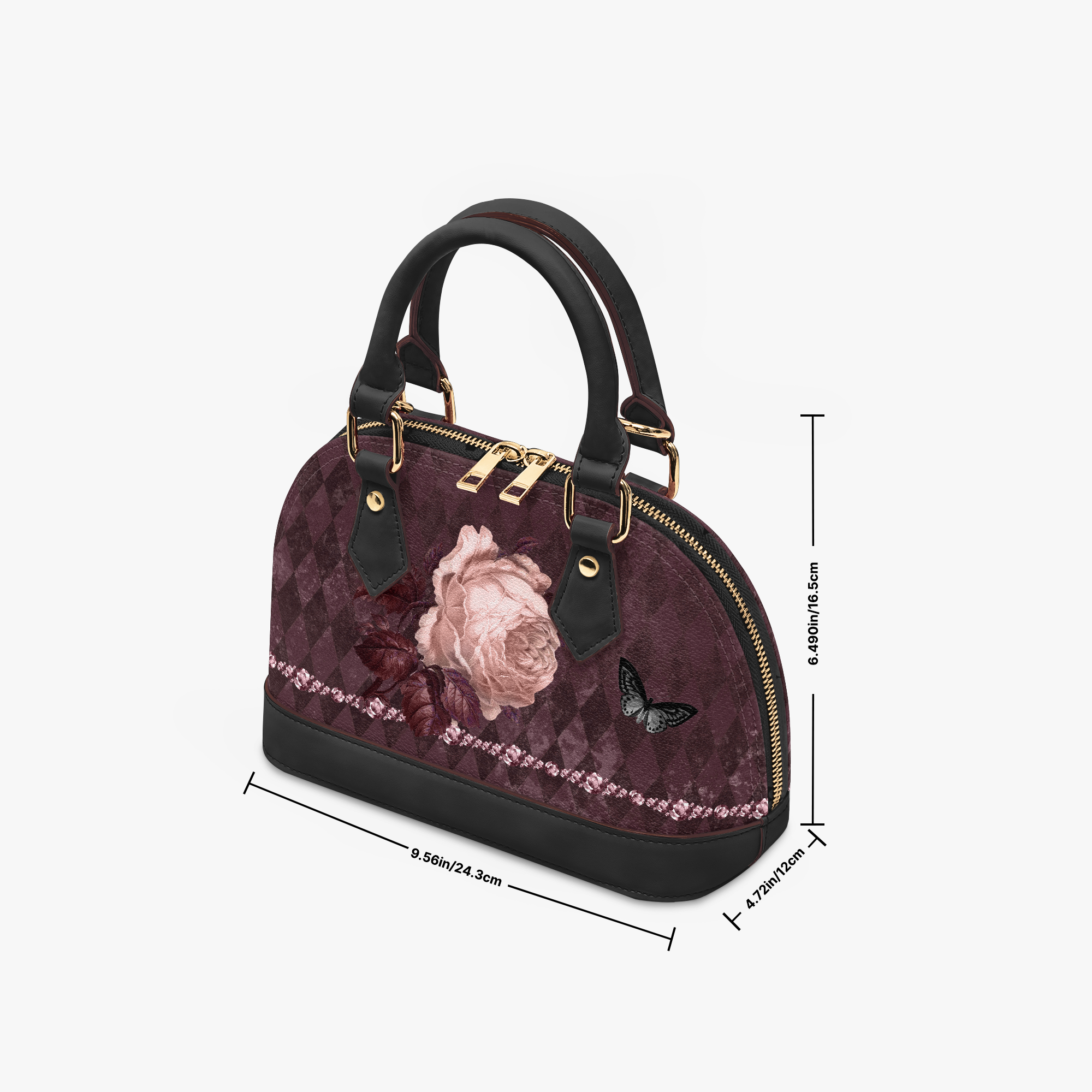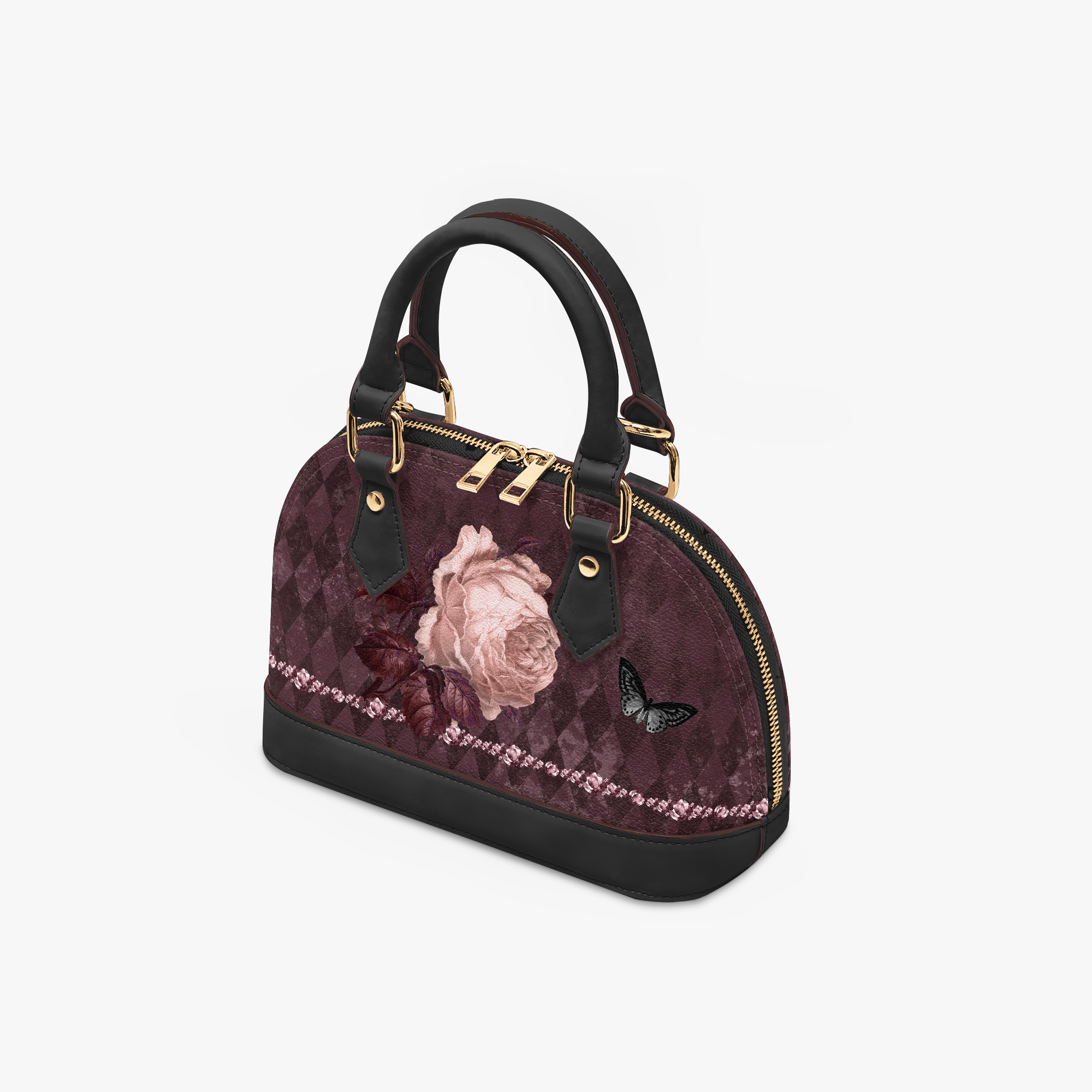 Stressed Burgundy & Rose Collection – Top Handle Shoulder Bag Burgundy with Pink Rose
