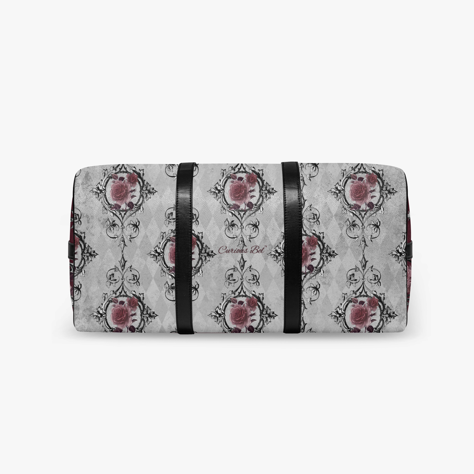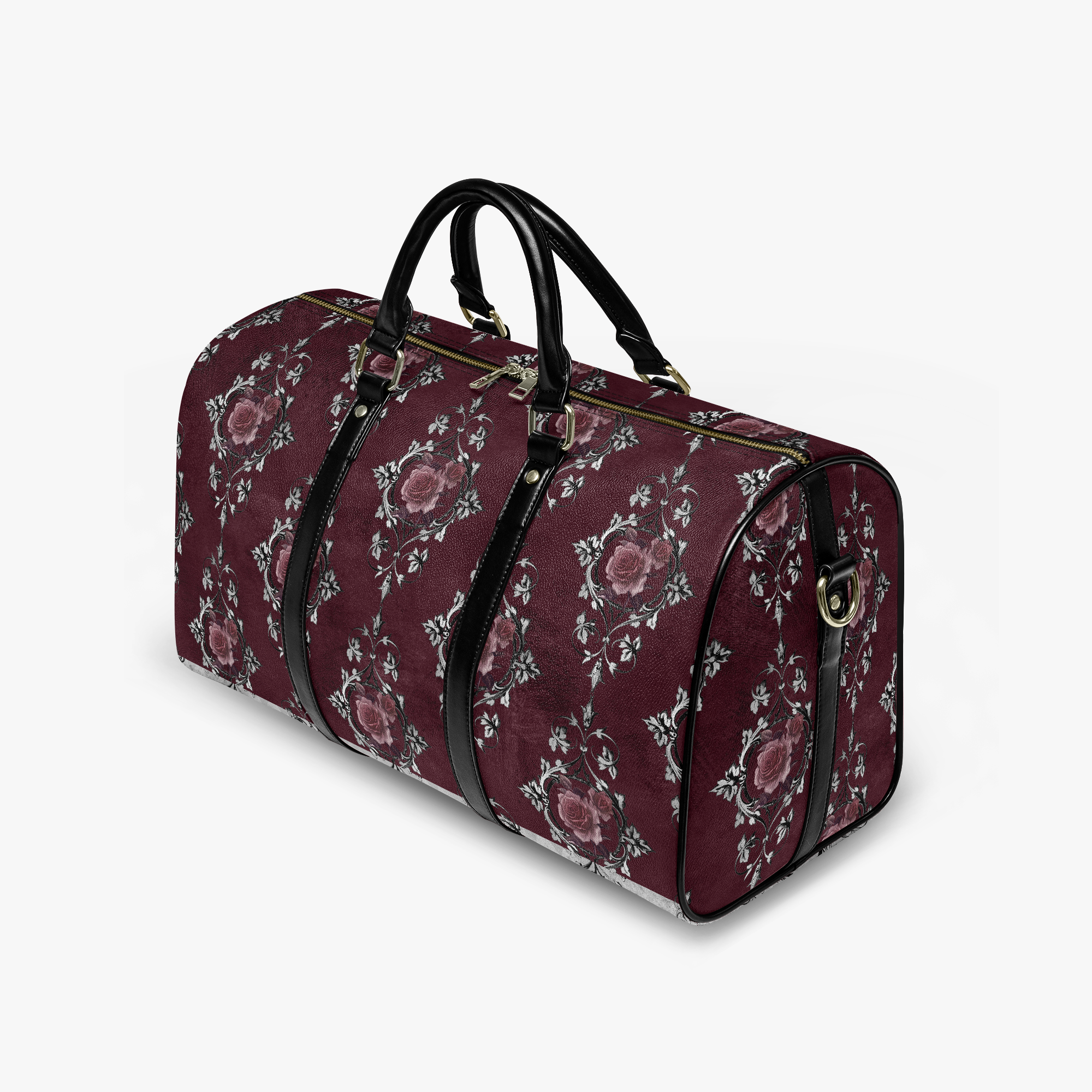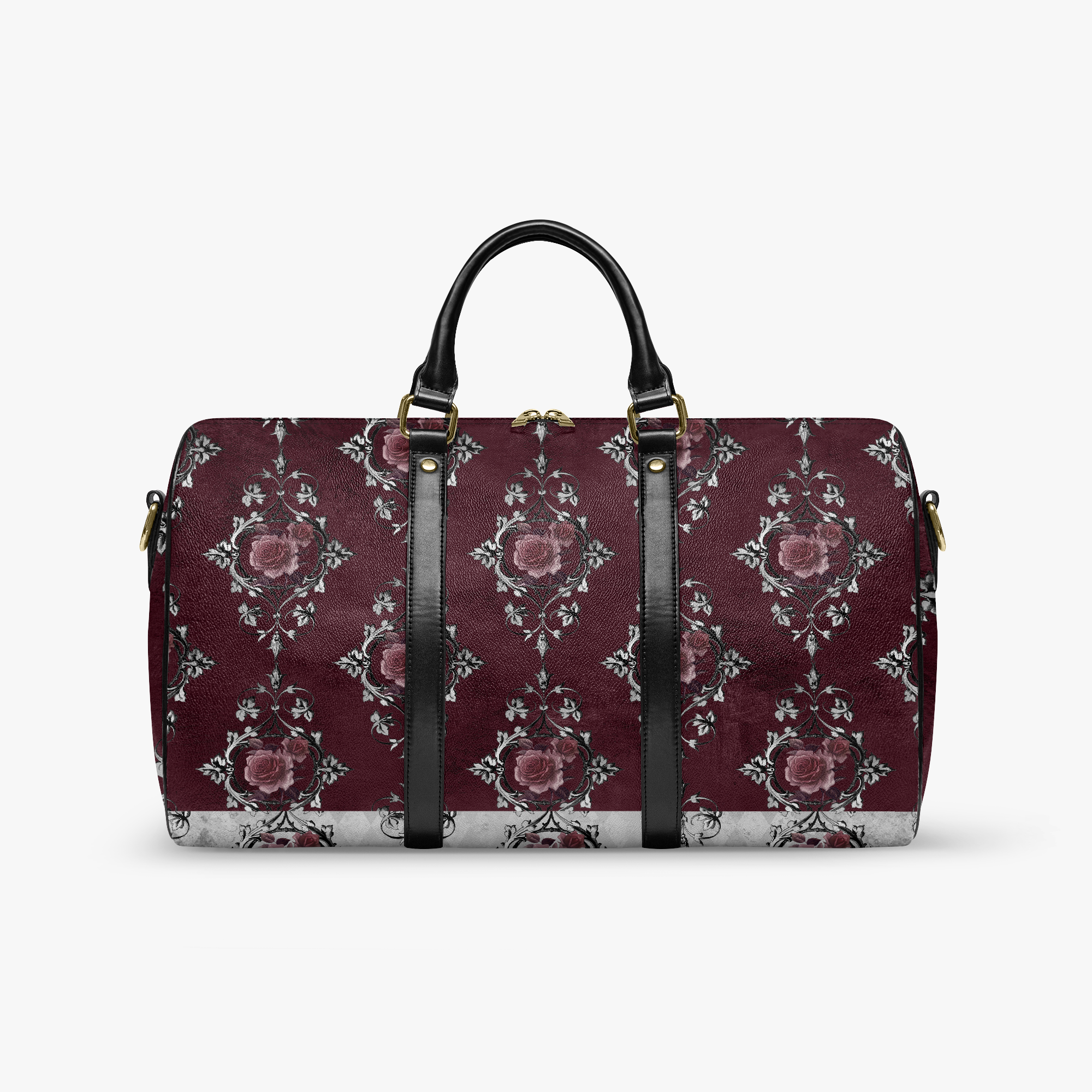 Stressed Burgundy & Rose Collection – Travel Duffle Bag Burgundy with Pink Rose Damask